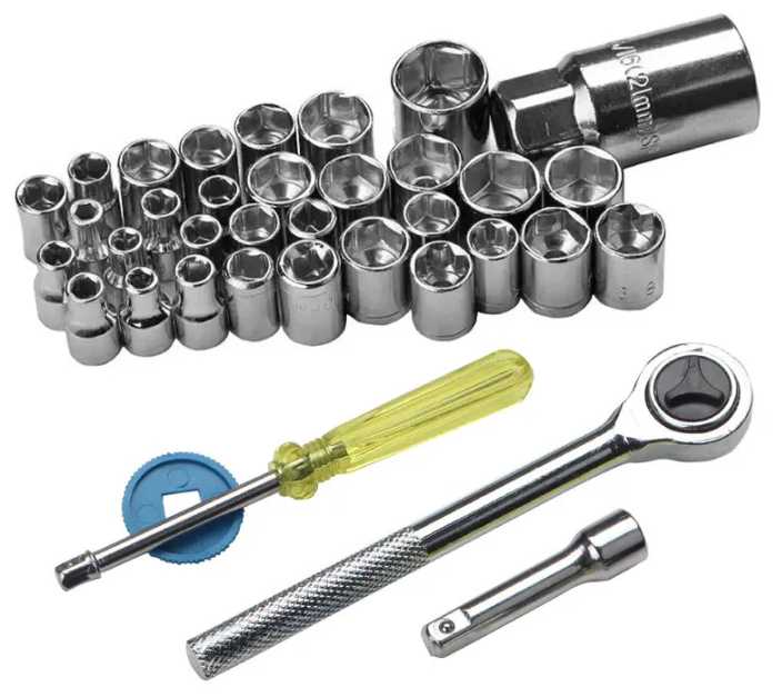 Инструменты в комплекте : | ключи гаечные, трещотка |