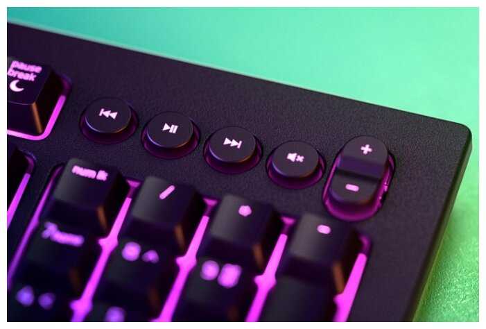 - + Удобная клавиатура с возможностью гибко настроить подсветку. На мой взгляд идеальный баланс между громозкостью и компактностью для этого форм фактора - клавиатура выглядит и ощущается добротно, но нет ощущения, что производитель понаворотил лишних декоративных элементов на корпусе, лишь бы круто смотрелось. Мультимедийные клавиши в наличии. Не нашел среди них лишних, при этом все нужные для меня есть. Возможность вешать маросы на кнопки и многие другие возможности, предоставляемые рэйзеровским софтом.