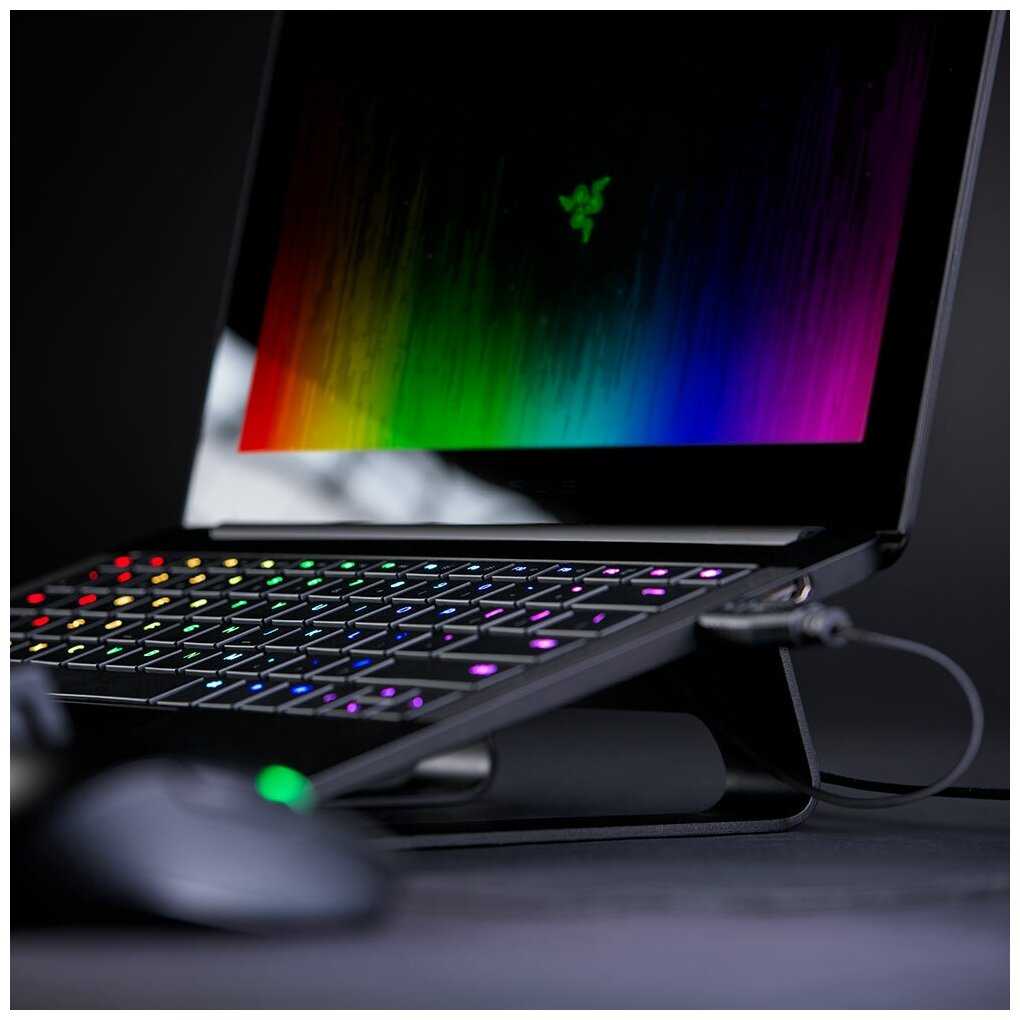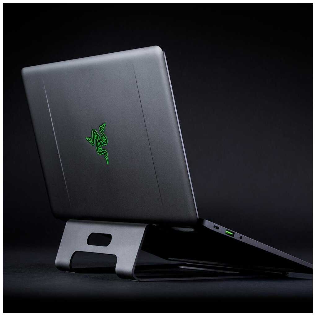 Угол наклона ноутбука на подставке делает работу удобнее, монитор практически на уровне глаз.