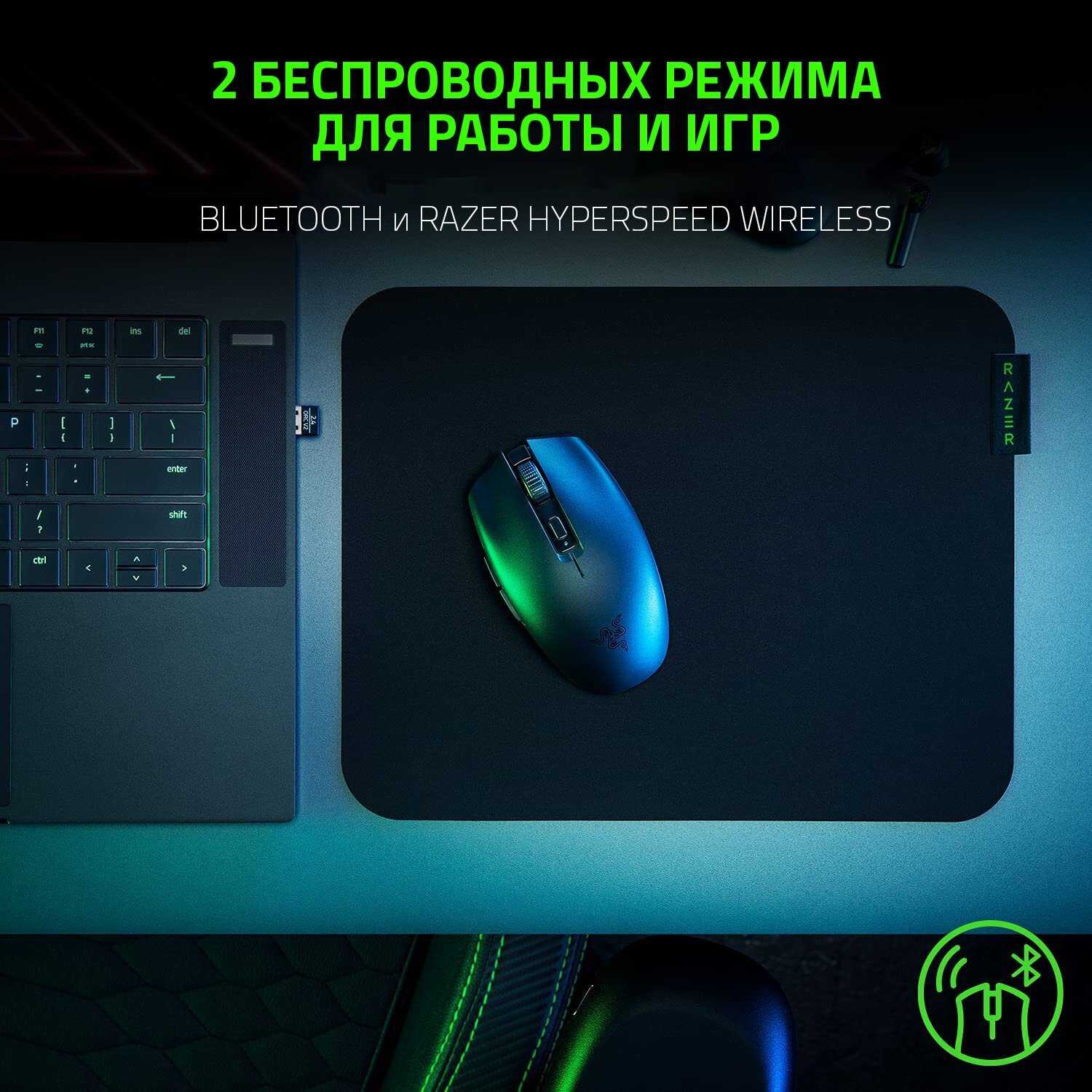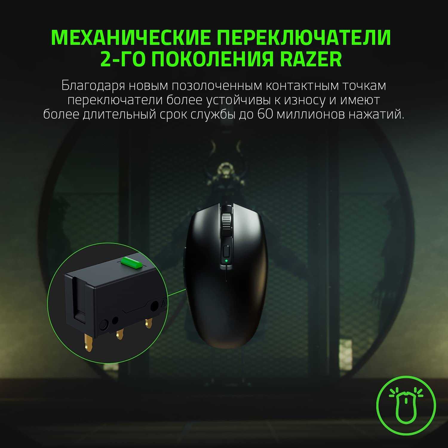 - время работы: 950 ч в режиме Bluetooth; 425 ч в режиме Razer HyperSpeed Wireless