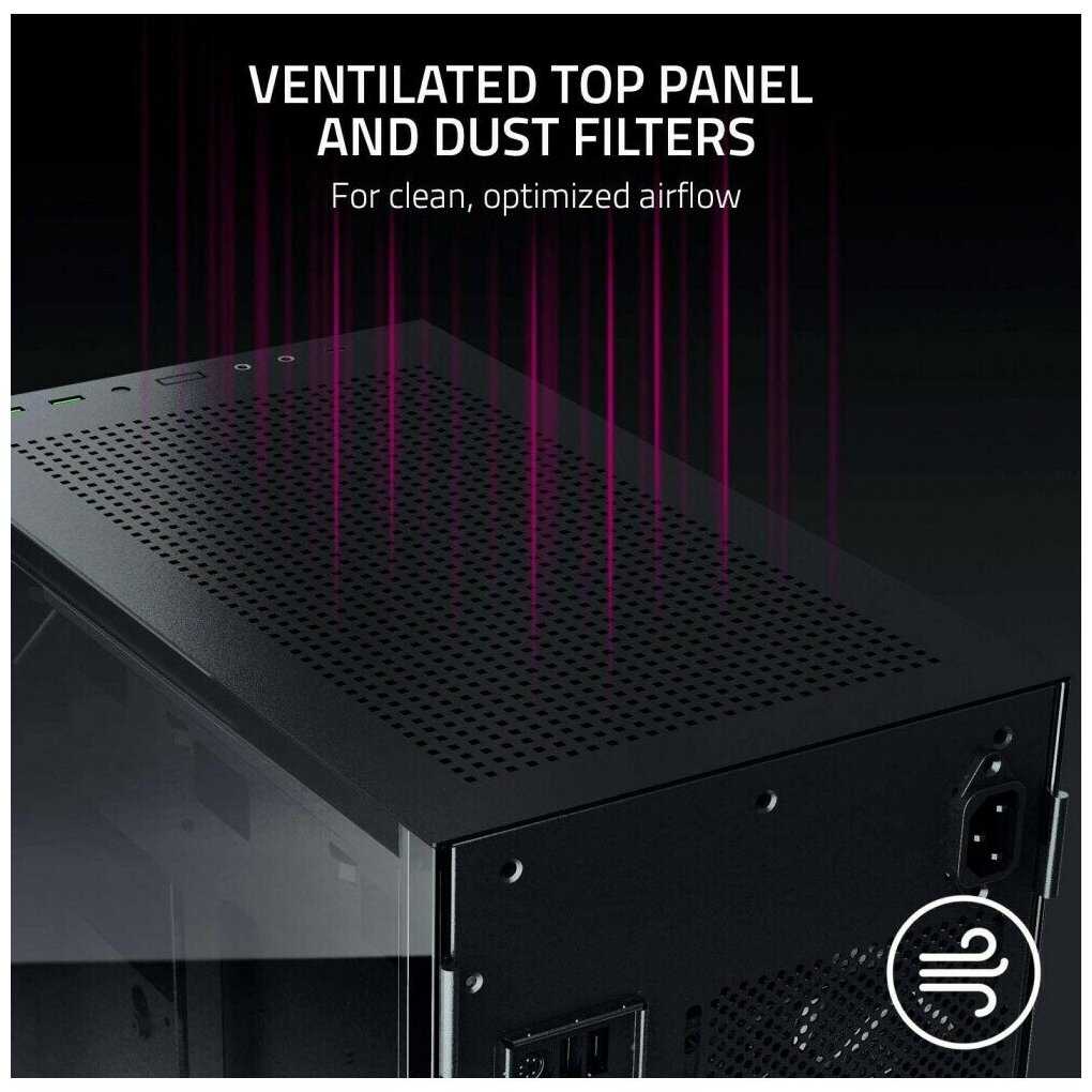 - + Увесистый металл, выглядит хорошо, стекла хорошие, боковые дверцы на петлях/магнитах. Хоть корпус и для miniitx но мржно воткнуть достаточно габаритные видиокарточки (пример асус стрикс 1060 влезала)