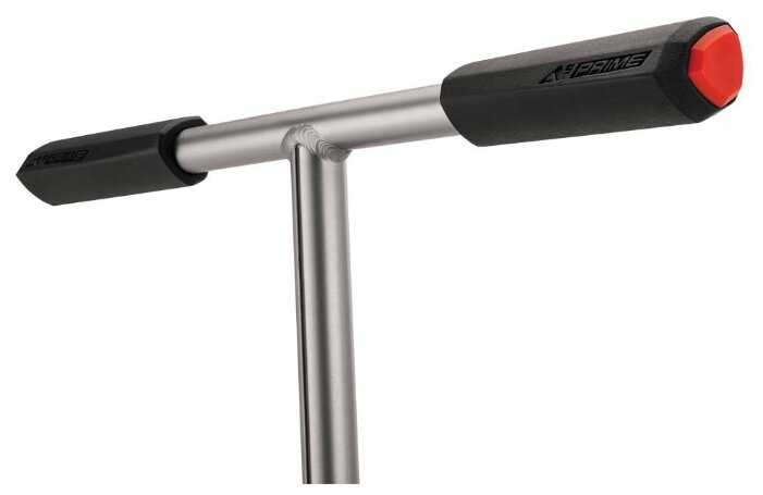 - Механизм складывания с фиксатором позволяет быстро трансформировать самокат в компактную форму.