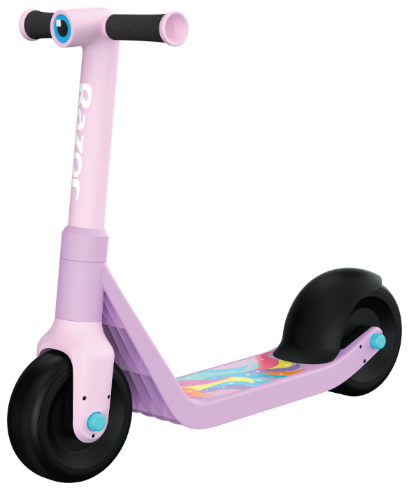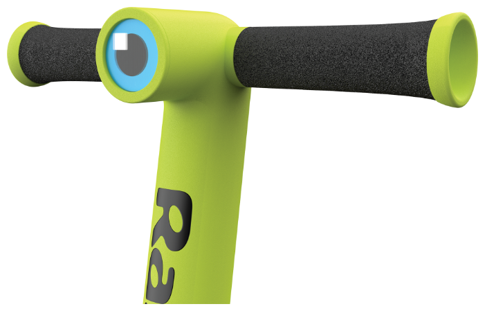 На ручках прорезиненные рукоятки, глазок на руле - светоотражатель, колеса широкие и устойчивые, если оставить самокат и отойти, он не падает.