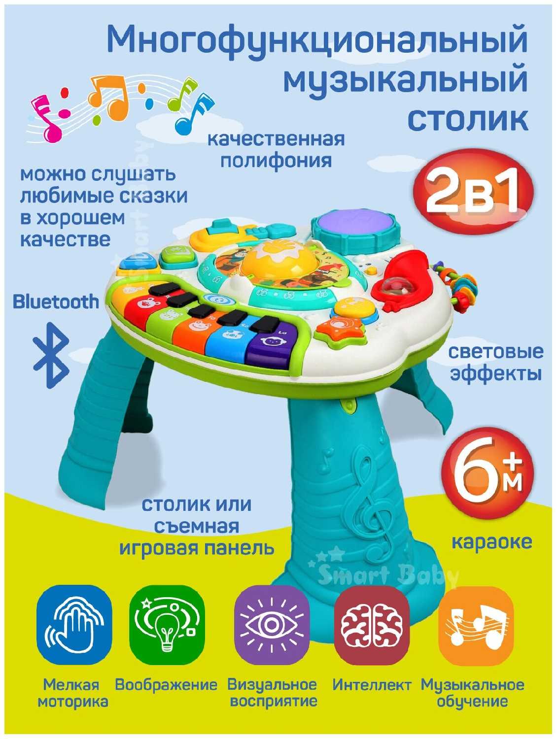 Smart Baby Развивающая игрушка мультифункциональный музыкальный столик 2 в 1, игровая панель, караоке, Bluetooth, JB0333948