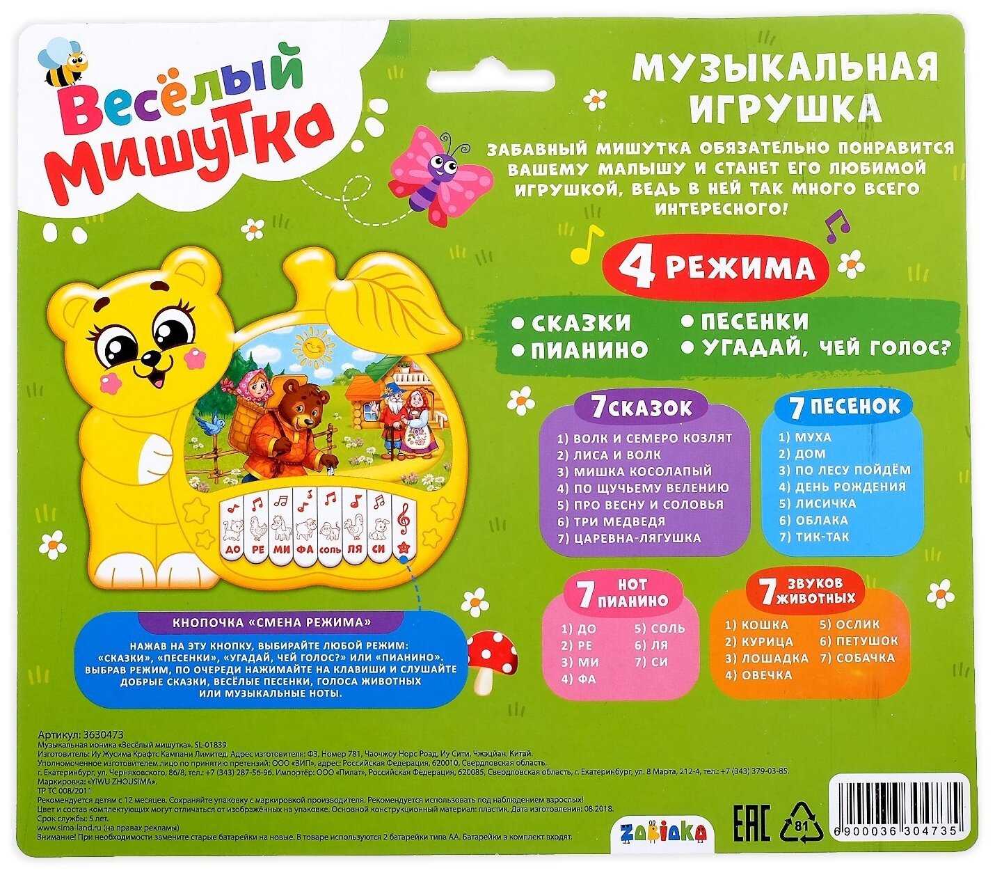 Забияка Развивающая игрушка Zabiaka Потешки для малыша (3473387)