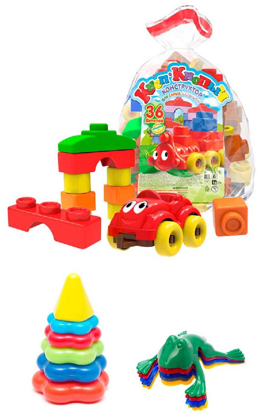 Биплант Набор развивающий: Конструктор "Кноп-Кнопыч" 36 дет. + Пирамида детская малая, Биплант