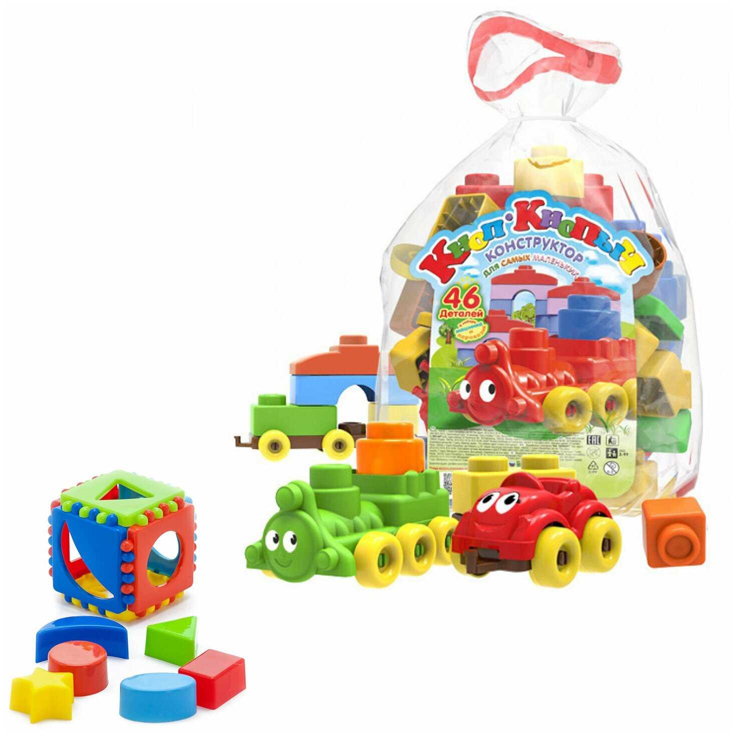 Биплант Набор развивающий: Конструктор "Кноп-Кнопыч" 46 дет. + Игрушка "Кубик логический малый", Биплант