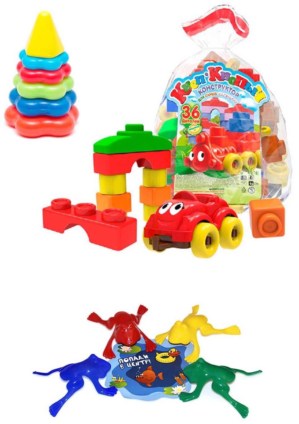 Биплант Набор развивающий: Пирамида детская малая + Конструктор "Кноп-Кнопыч" 46 дет. + Команда КВА №1 биплант