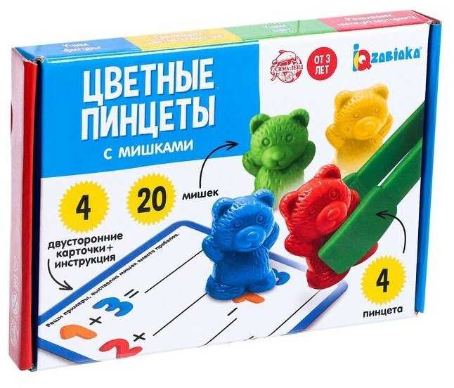 IQ-ZABIAKA Набор для сортировки «Яркие пинцеты», 4 шт.