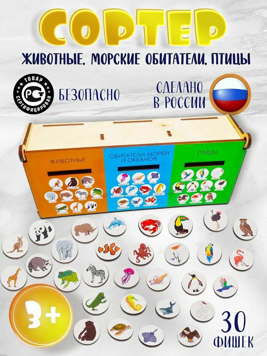 Сибирские игрушки Сортер "Морские обитатели, животные, птицы"