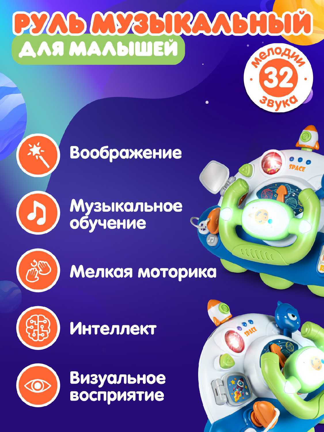 Smart Baby Музыкальный развивающий руль, переключение скоростей, зеркала, фары, подсветка панели, юным автомобилистам, свет, звук