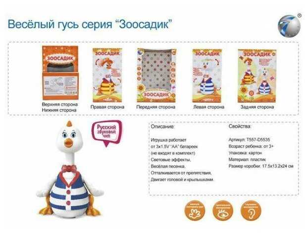 TONG DE Игрушка на батарейках 28699HX Зоосадик Гусь, свет, звук, в коробке