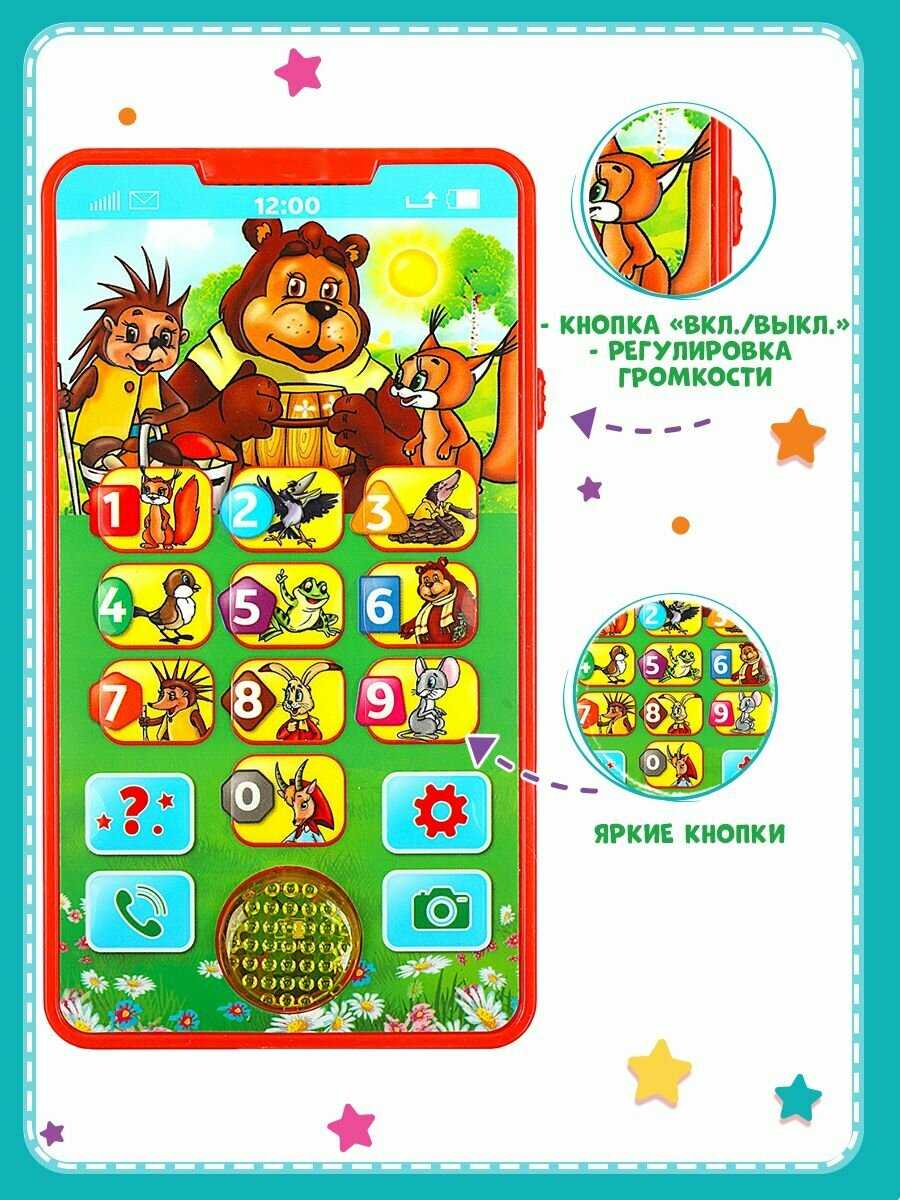 Умка Обучающий телефон "Ми-ми-мишки", 100 песен, сказок, стихов, загадок, свет (HT882-R1)