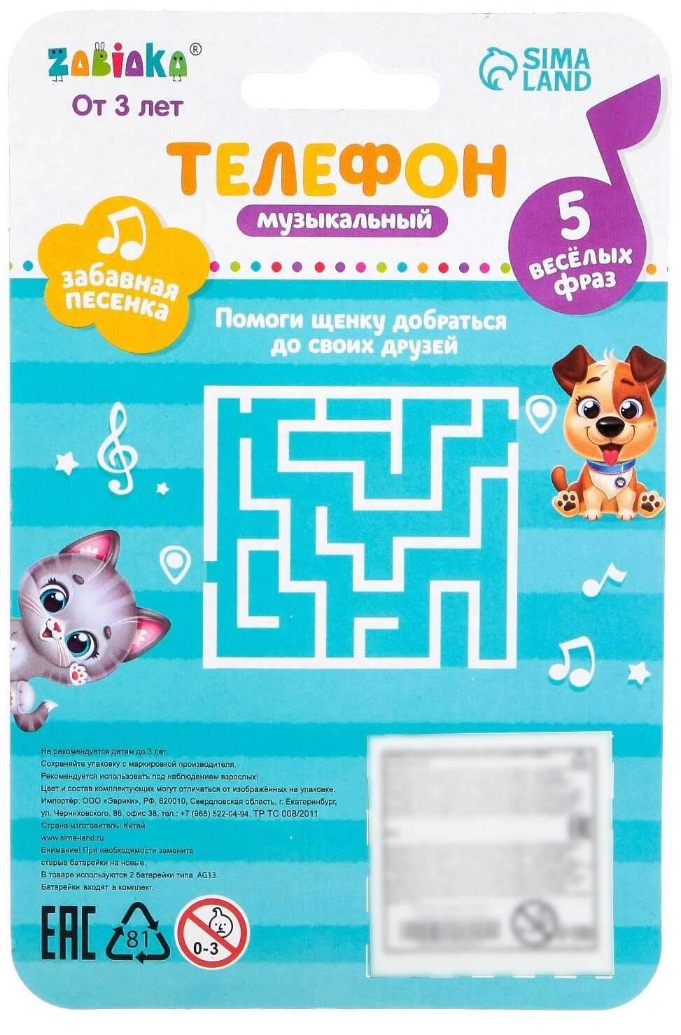 Забияка Интерактивная развивающая игрушка Zabiaka Телефончик музыкальный Весёлый друг