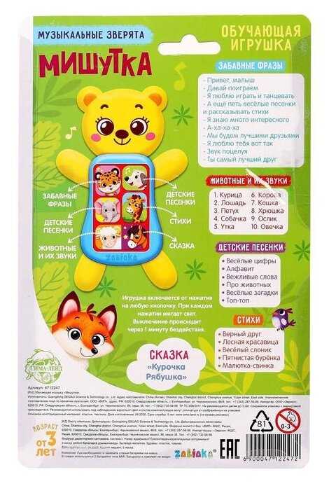 Забияка Интерактивная развивающая игрушка Zabiaka Мишутка