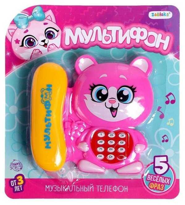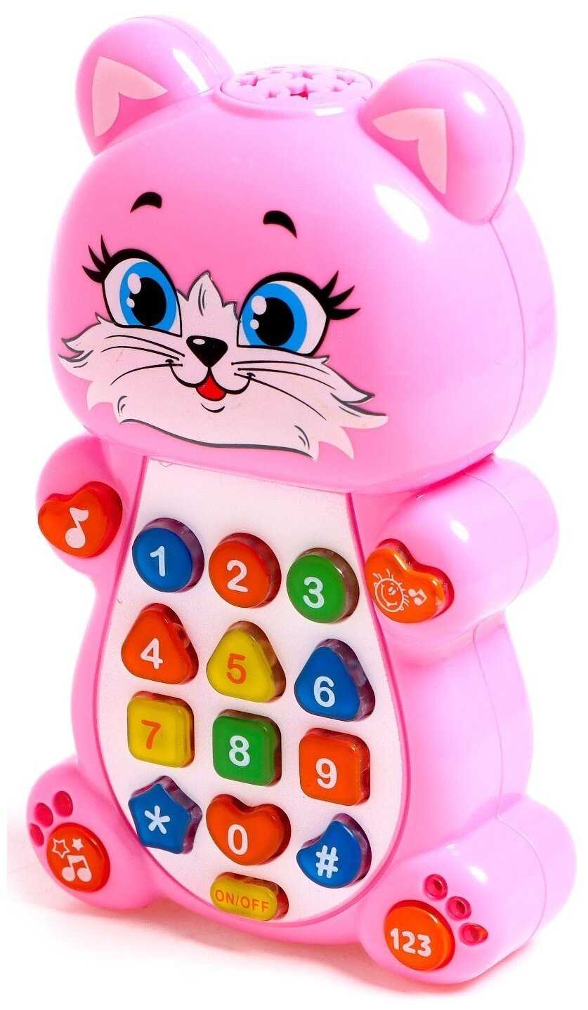 Забияка Музыкальный телефончик «Котёнок», русская озвучка, работает от батареек, цвет розовый