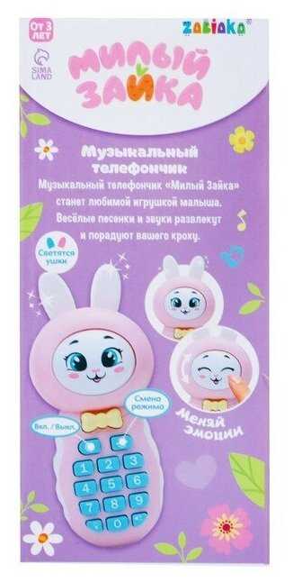 Забияка Музыкальный телефончик «Милый зайка», звук, свет, цвет розовый