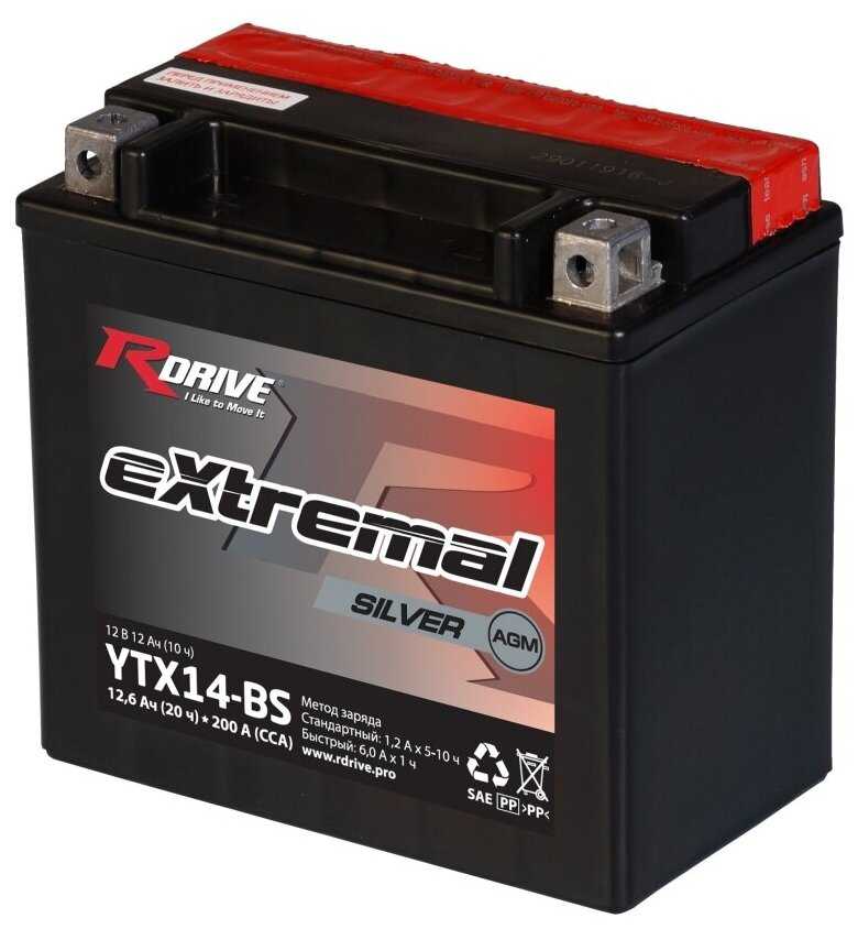 Отзывы о Мото аккумулятор RDrive eXtremal Silver YTX14-BS 150x87x145