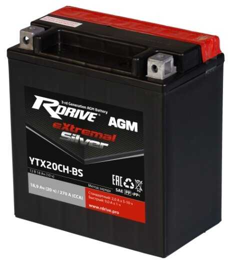 Отзывы о Аккумулятор для спецтехники RDrive eXtremal Silver YTX20CH-BS 150x87x161