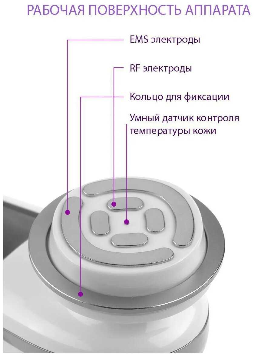 | Принцип работы : | миостимуляция, радиочастотный лифтинг, охлаждение, ионизация |