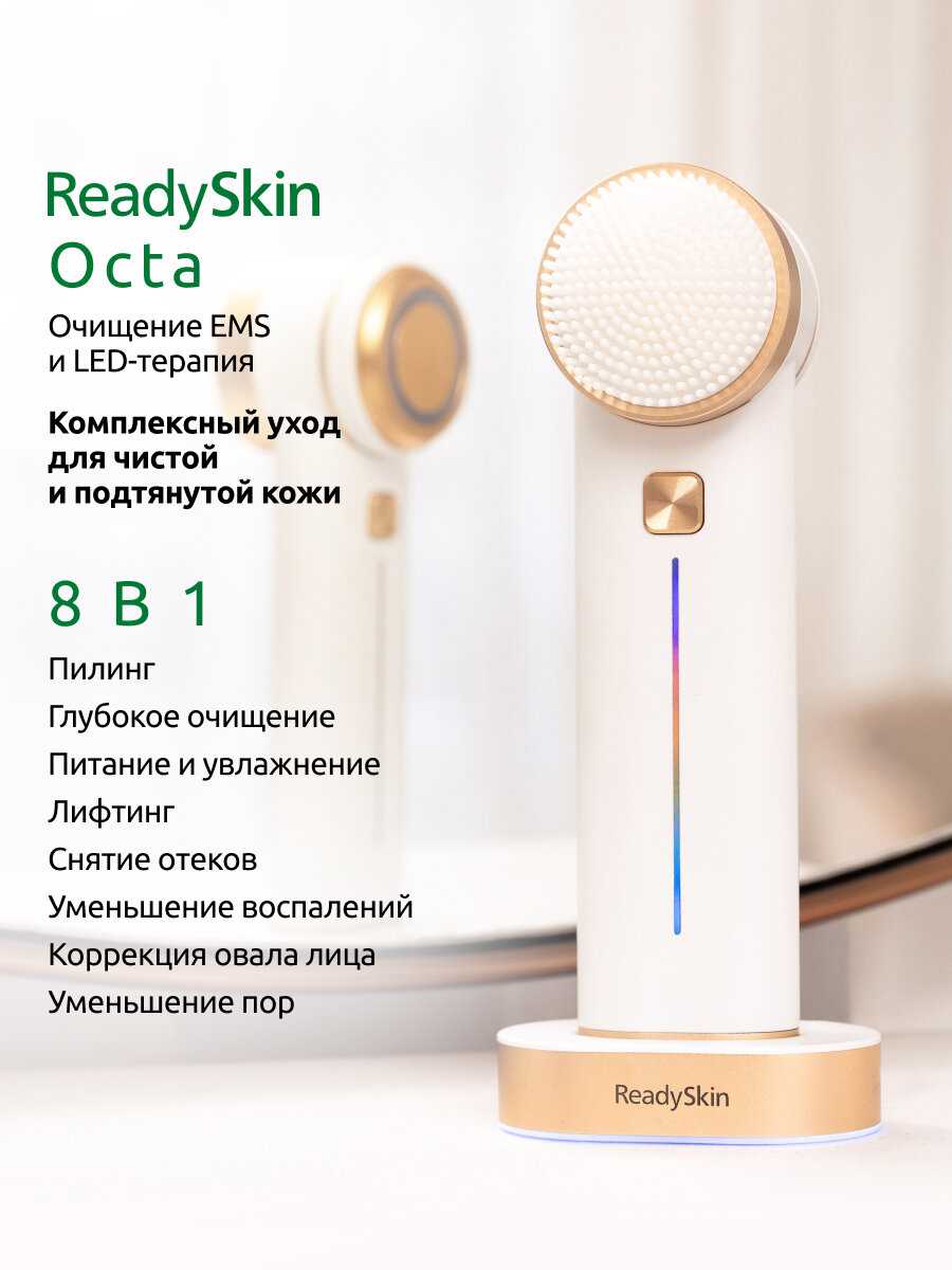 | Комплектность : | 1. Аппарат ReadySkin Octa 2. Зарядная устройство-база 3. Адаптер питания для зарядного устройства 4. Салфетка для ухода за прибором 5. Тканевый мешочек для хранения и транспортировки прибора 6. Руководство по быстрому старту 7. Руководство пользователя |