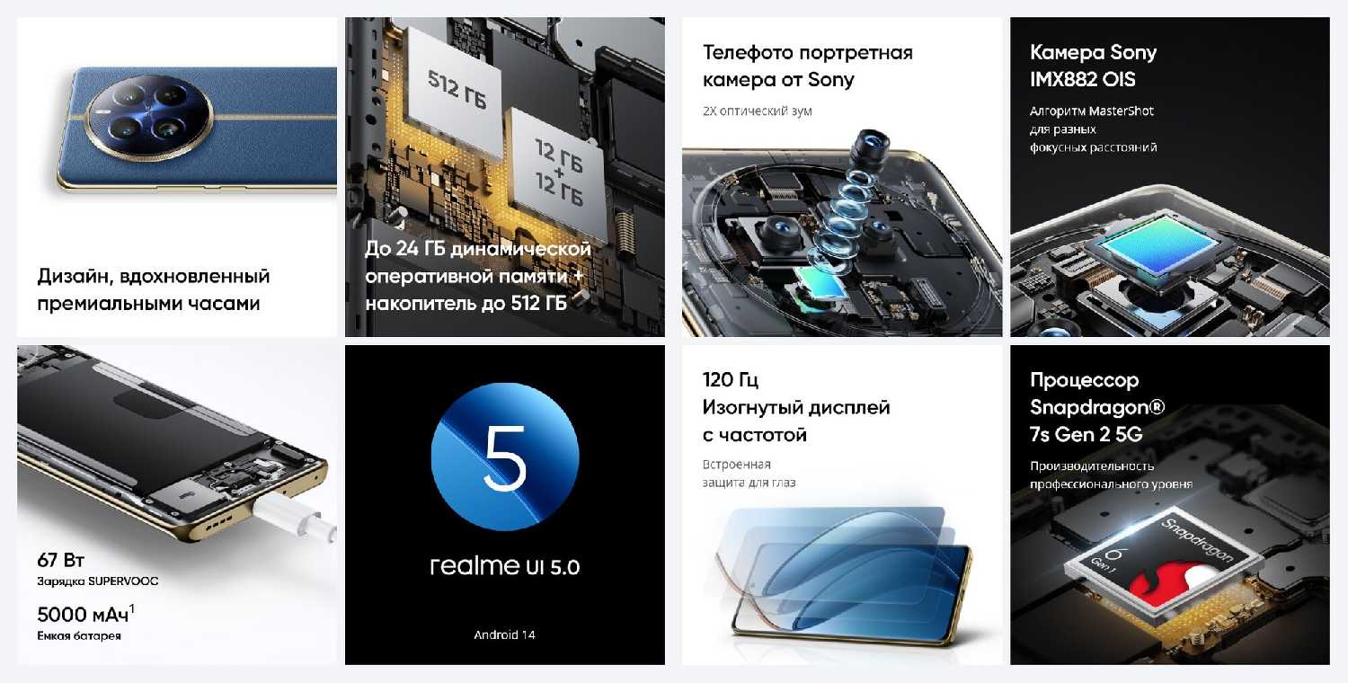 - Чистая оболочка Realme UI 5.0 на Android 14:
