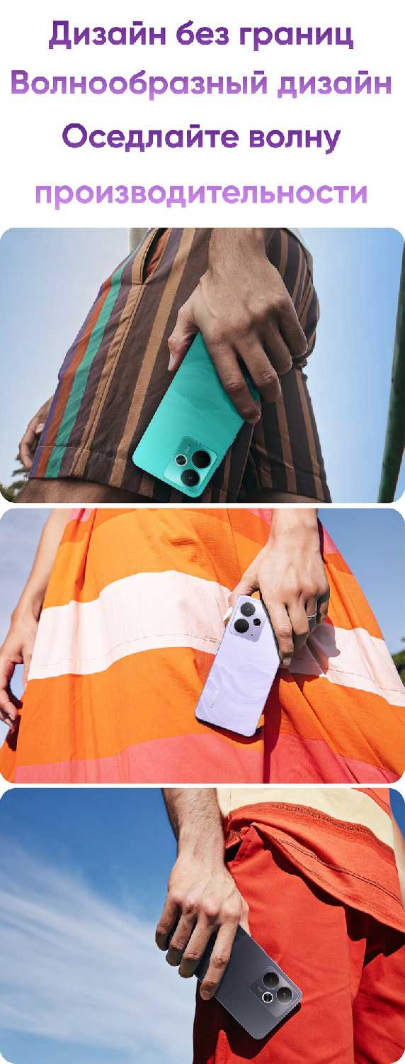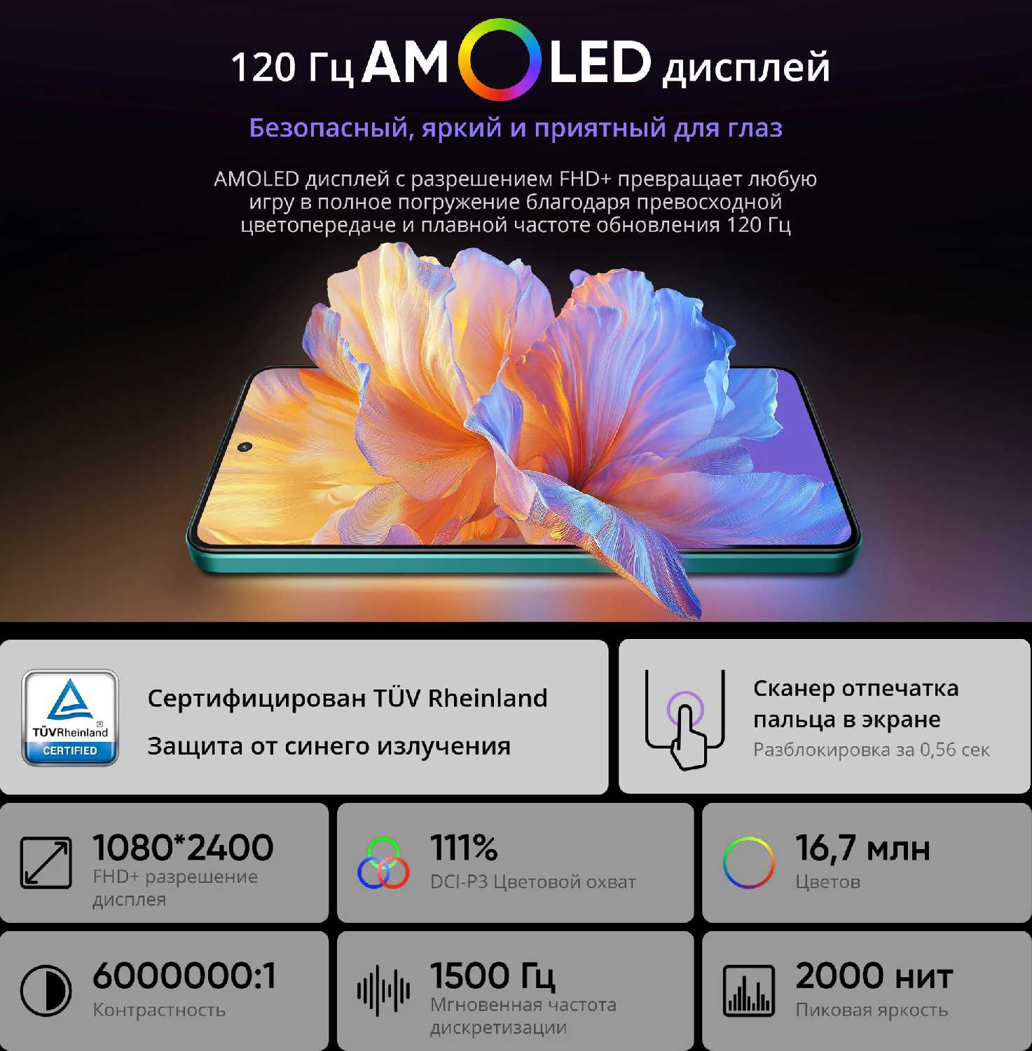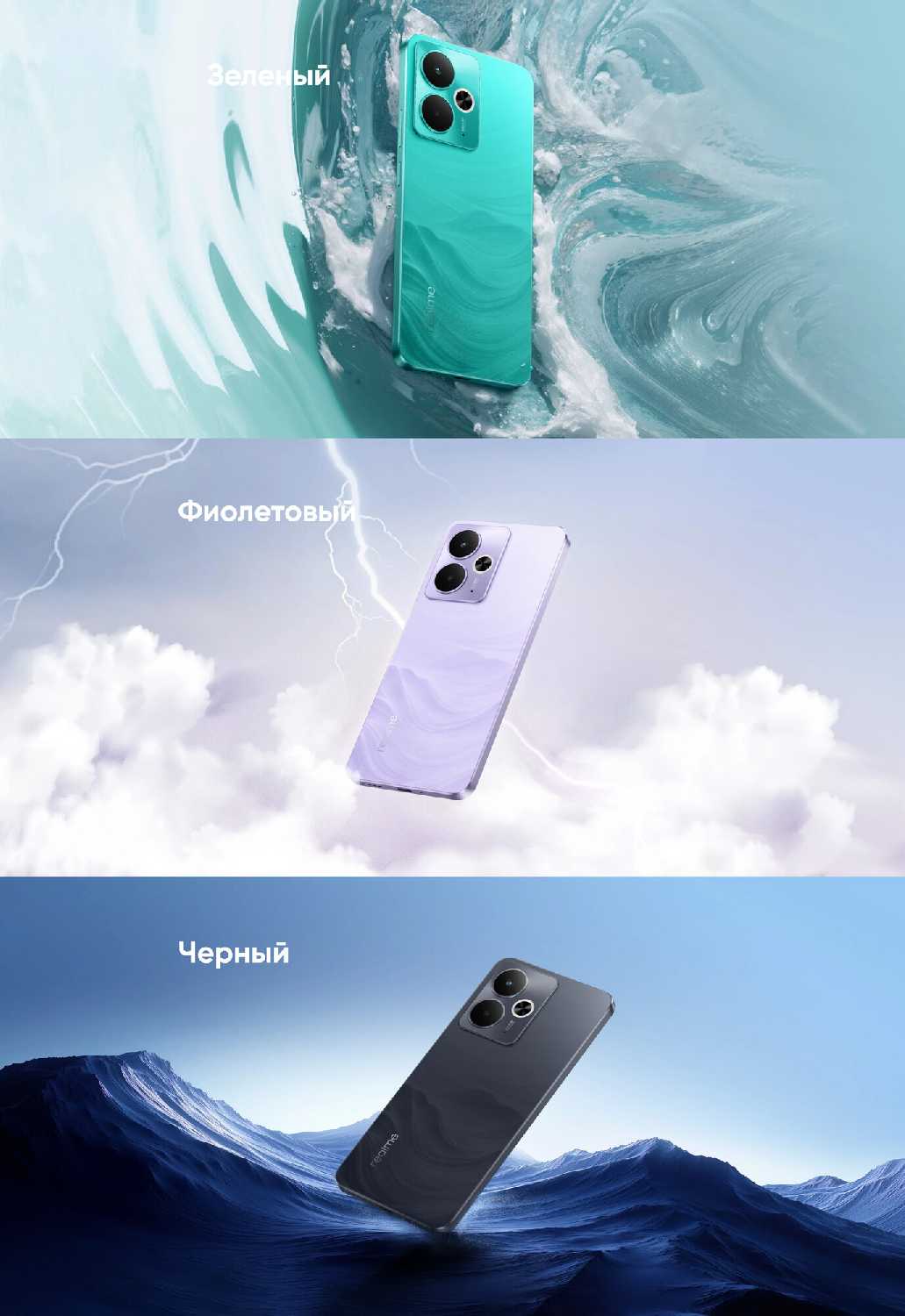 Качество сборки, дизайн и защита от внешних воздействий: Смартфон выделяется на рынке своим запоминающимся дизайном, в частности, глубоким изумрудным или сиреневым цветом задней панели с волнообразным 3D-эффектом, который приятно лежит в руке и выглядит премиально. Качество сборки не вызывает нареканий, устройство ощущается монолитным и добротно сделанным. Ключевой особенностью является наличие серьезной защиты от пыли и влаги (вероятно, по стандарту IP), которая, по словам пользователей, является одной из лучших на рынке и существенно превосходит защиту от "легкого дождика". Это позволяет не переживать за устройство при использовании под дождем или в пыльных условиях, что является серьезным аргументом для активных пользователей. В комплект поставки входит защитный чехол и заранее наклеенная пленка на экран, что сразу обеспечивает базовую защиту от царапин и небольших ударов. Некоторым пользователям чехол кажется скользким, но факт его наличия в коробке оценивается положительно. Эргономика устройства продумана, его удобно держать в руке даже в течение длительного времени, а одновременная зарядка и использование не доставляют дискомфорта.