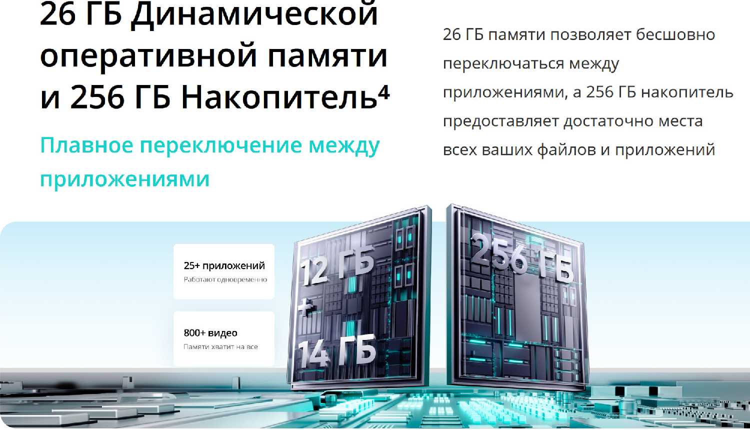 Процессор обеспечивает высокую производительность, позволяя запускать современные мобильные игры без лагов и зависаний. При переключении между несколькими открытыми приложениями смартфон сохраняет плавность работы, демонстрируя эффективную многозадачность. Мощности 8-ядерного процессора и 12 ГБ оперативной памяти достаточно для большинства повседневных и рабочих задач, а также для требовательных игр. -