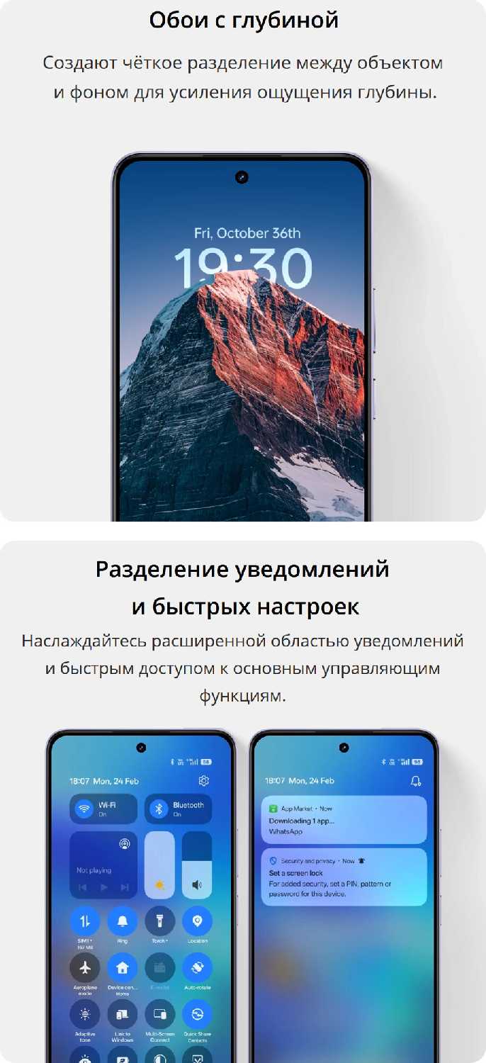 - Большой дисплей без рамок усиливает иммерсию в фильмах и играх, с быстрой разблокировкой сканером отпечатков.