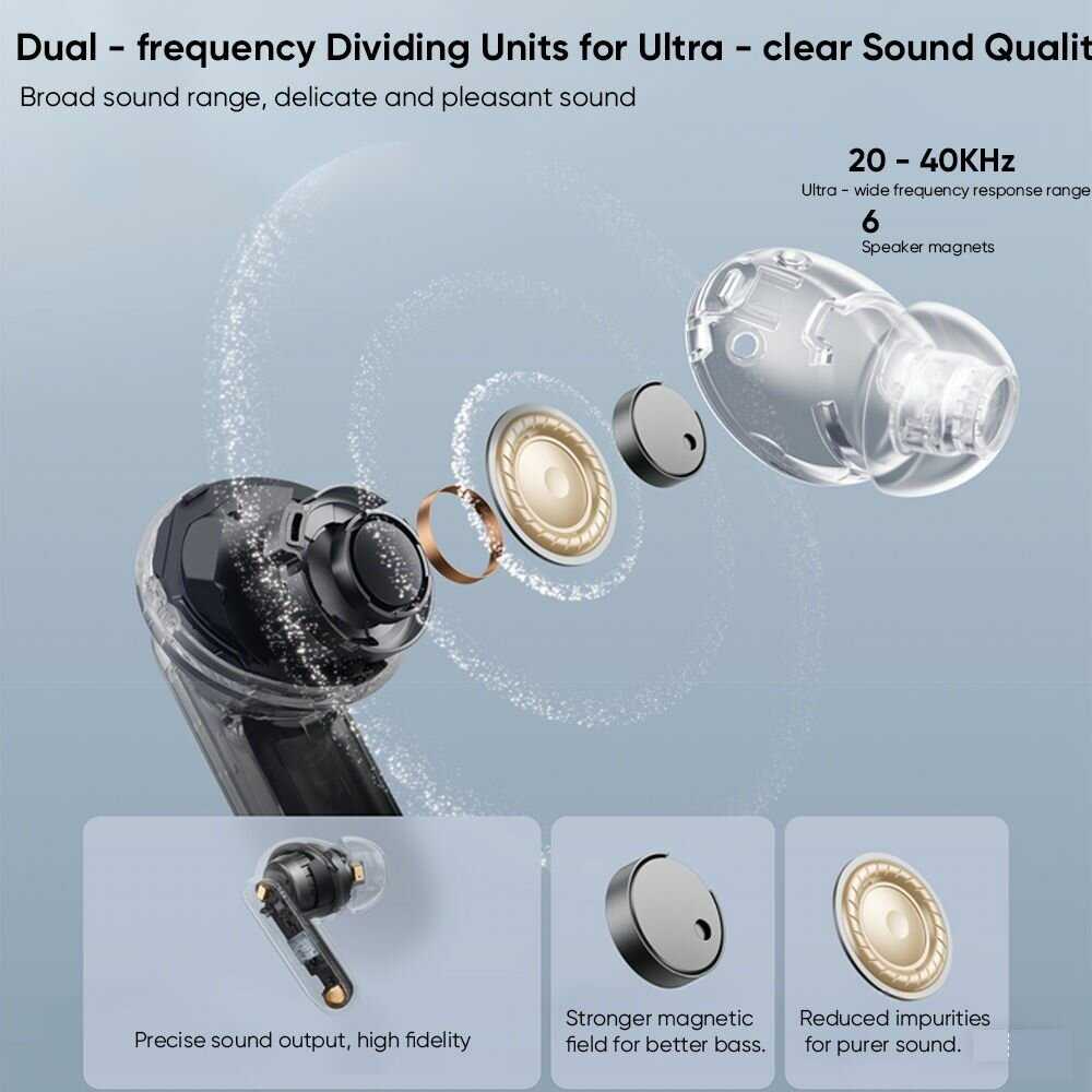 Неплохой звук, до jbl все равно не тянут. Не держит заявленное время заряд батареи. При записи звукового сообщения с использование наушников вообще нечего не слышно, только звуки окружающей обстановки, особенно это касаемо улицы. В помещении ситуация получше. Шумоподавления работает только при загрузке приложения и его включении, в противном случае его просто нет и не ждите что оно включится само. Кейс удобный, но не видно идёт зарядка наушников или нет - неудобно. Зарядки полного кейса по ощущениям хватает максимум на 3 зарядки при том что наушники полность не высаживались, как для меня так минус. За столько, за сколько купил я они этого и рядом не стоят, край 6 тыщ.