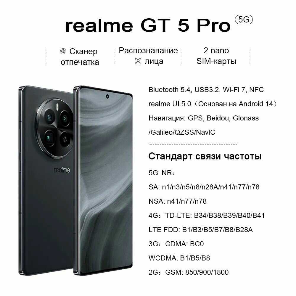 Стандартная комплектация: Realme GT5 Pro, прозрачный чехол, Зарядное устройство европейского стандарта, кабель Type-c (оригинал realme), игла для sim-карты.