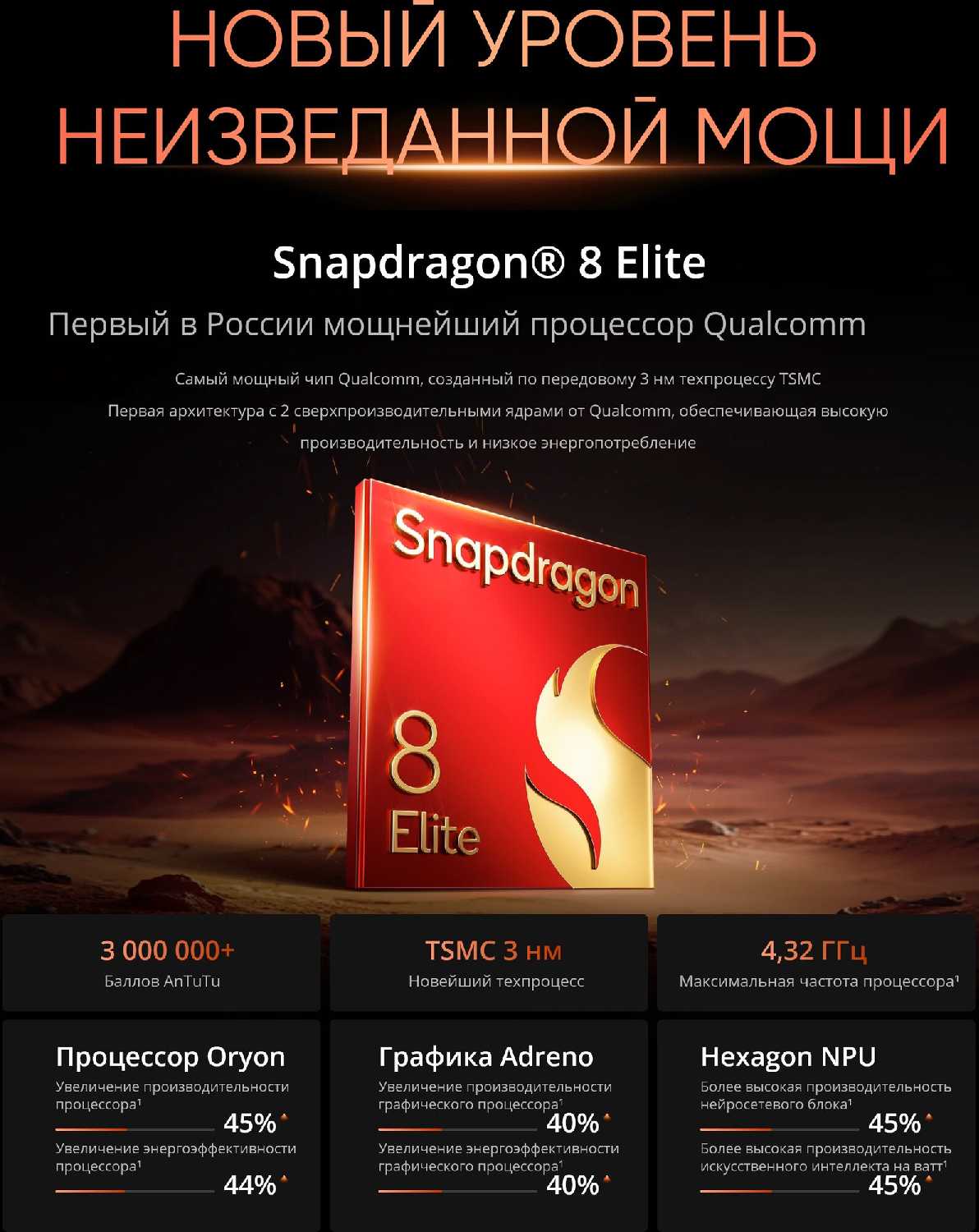 - + - Отличная производительность: процессор Snapdragon 8 Elite действительно раскрывает свои возможности