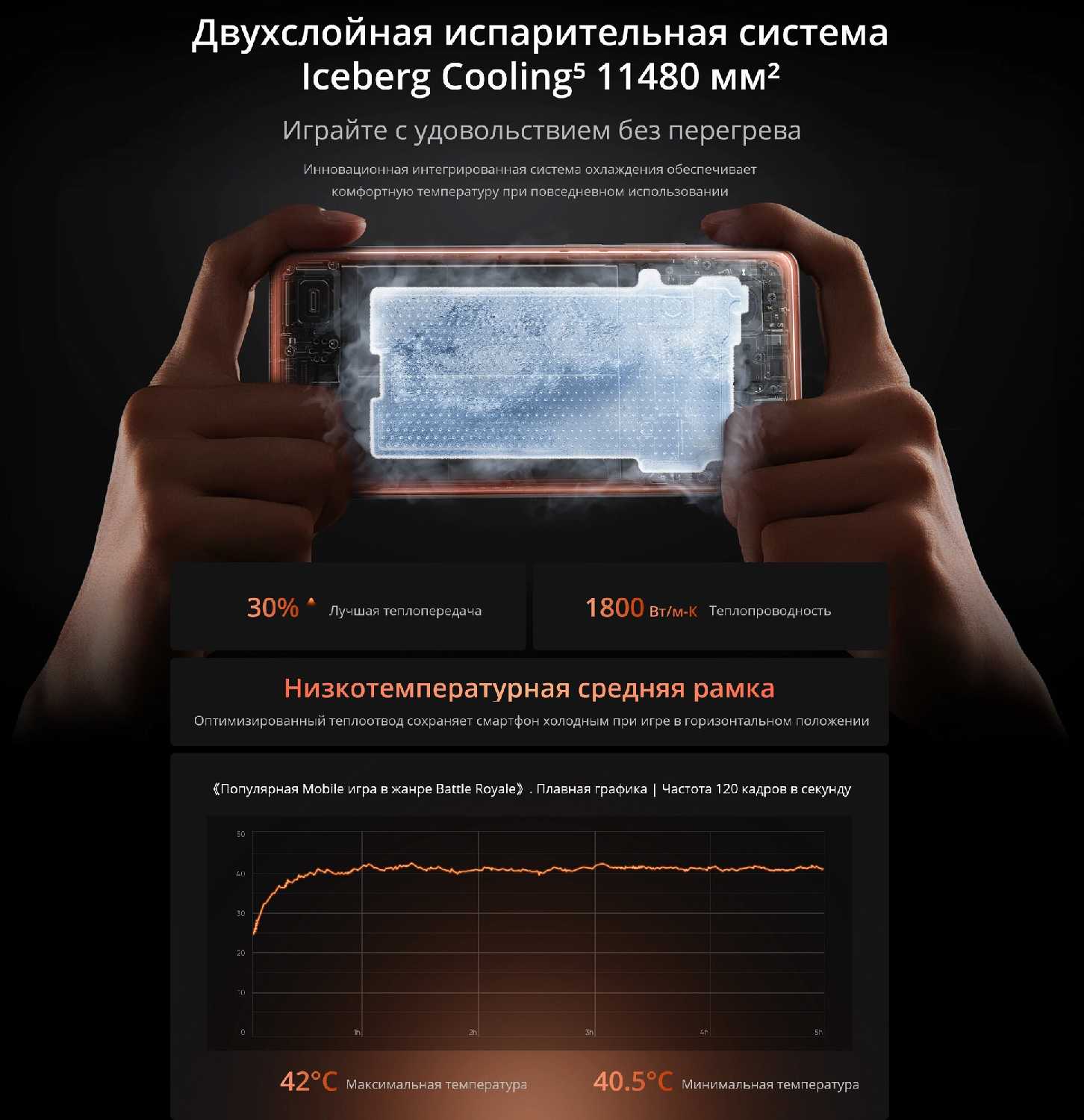 При игровых сессиях или съемке 8К-видео корпус нагревается умеренно благодаря системе охлаждения. Однако при использовании зарядки 120W температура значительно повышается — пользователи рекомендуют 65W адаптеры для снижения тепловыделения. В режиме GT (производительности) нагрев контролируемый. -