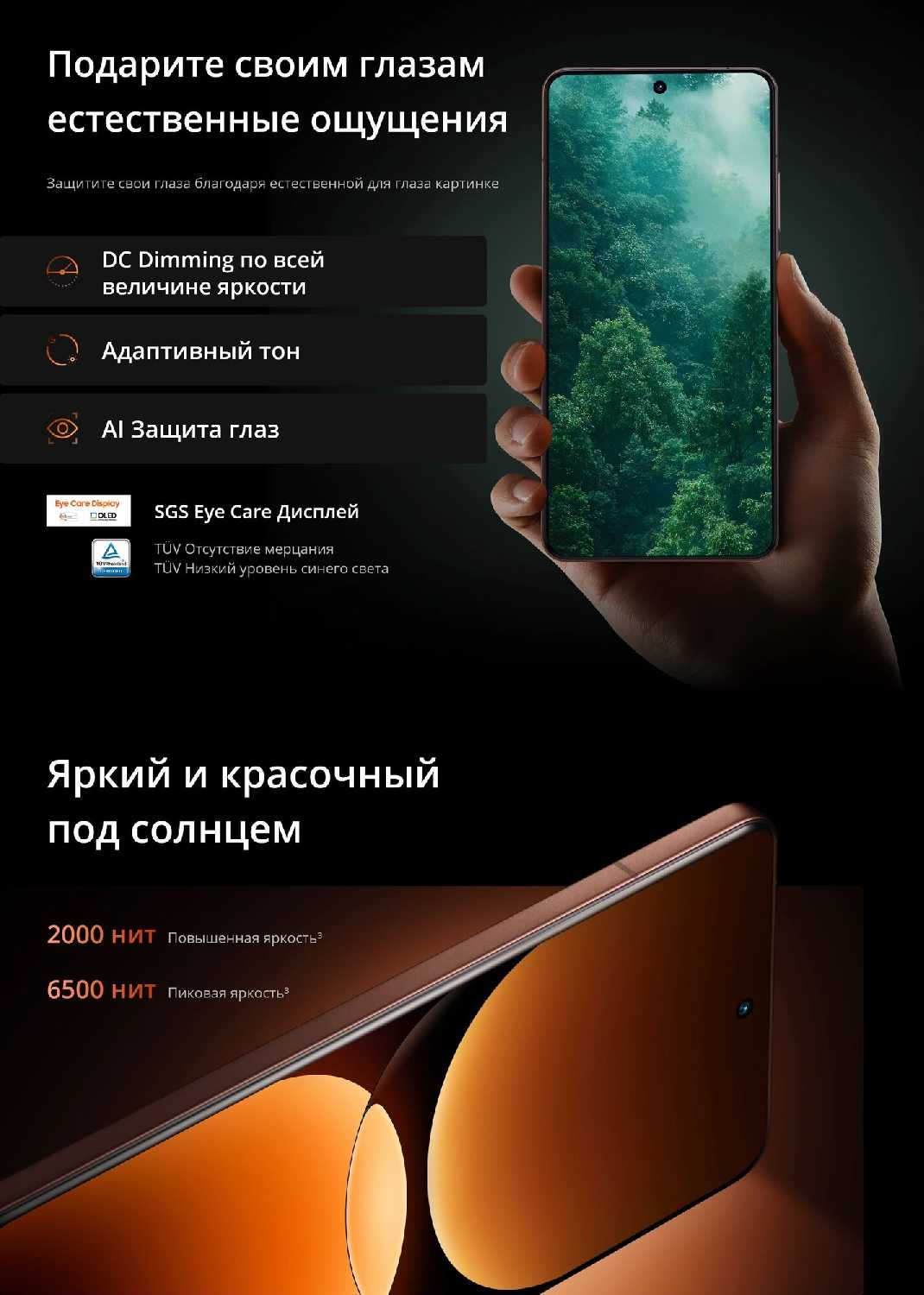 - Пиковая яркость свыше 1000 нит гарантирует комфортную видимость при прямом солнечном свете без искажения цветов.