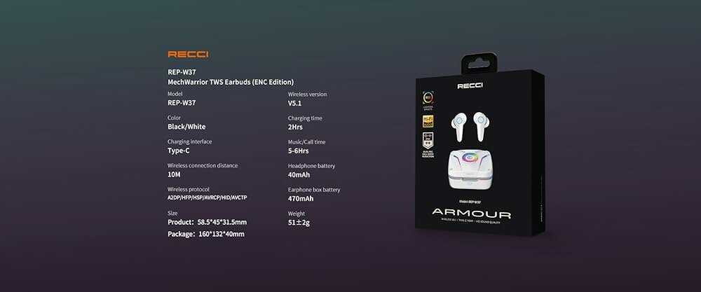 Характеристи Recci Armour TWS Gaming Earphone (REP-W37)