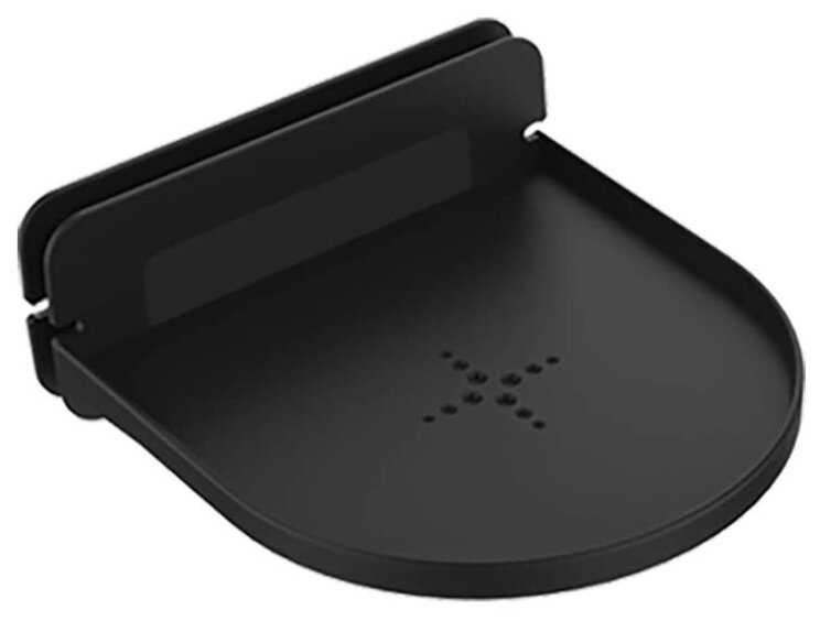 Полка выполнена из черного пластика, который оценивается как достаточно жесткий для своих задач. Обзор качества сборки положительный: отсутствуют заусенцы, детали плотно подогнаны. Однако материал не рассчитан на ударные нагрузки — при падении возможны сколы. Пользователи подчеркивают, что легкость конструкции (около 100–150 г) не снижает устойчивости при правильном креплении, но для тяжелых устройств надежнее использовать саморезы. -