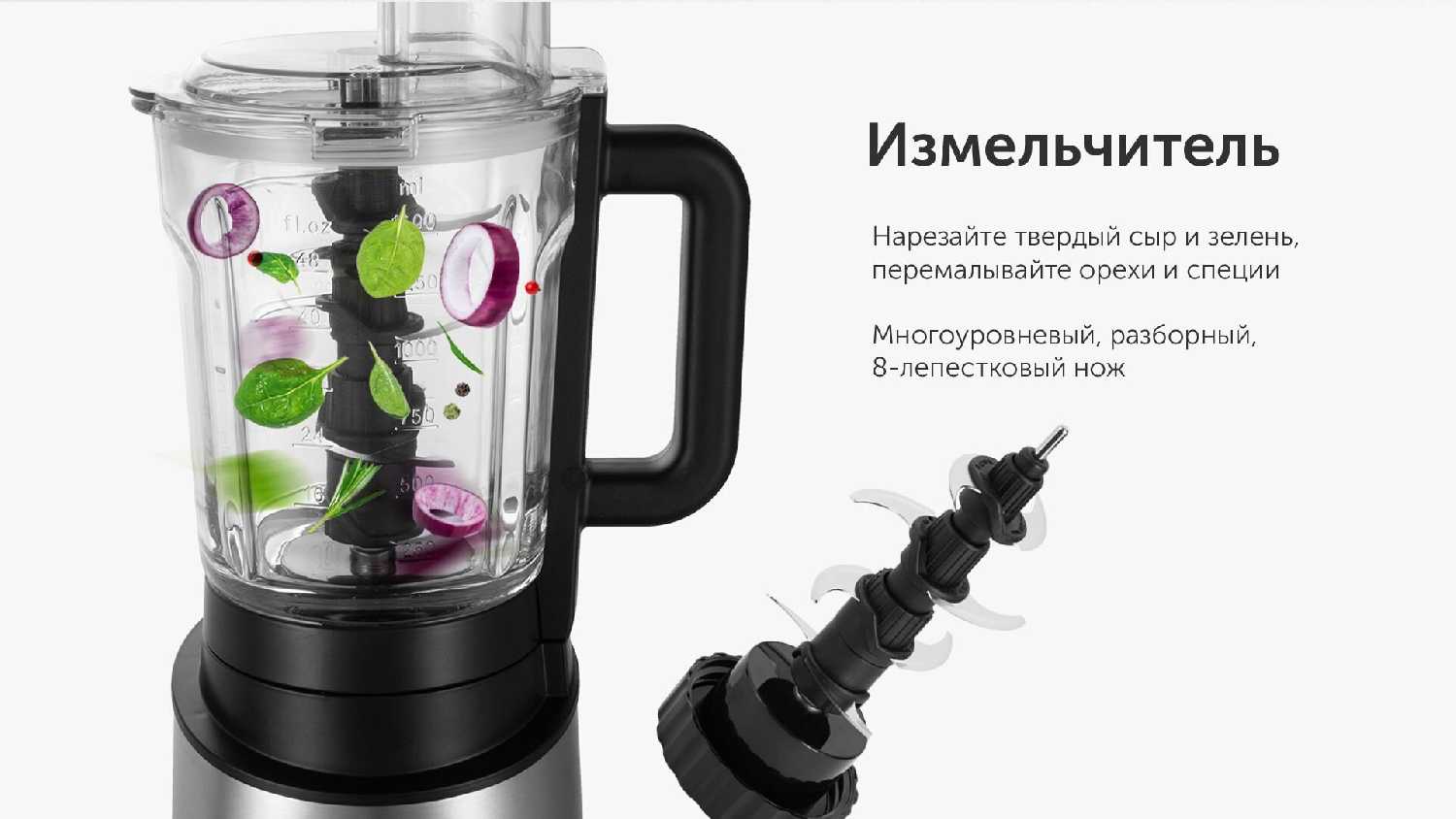 - + Мощный, подходит и для приготовления коктейлей, собственно для чего и покупался, так же и для измельчений чего либо, круто что есть насадки для шинковки, очень удобно готовить овощные закуски (натертые на шинковке) не доставая огромную мясорубку для этого. Очень доволен покупкой, рекомендую