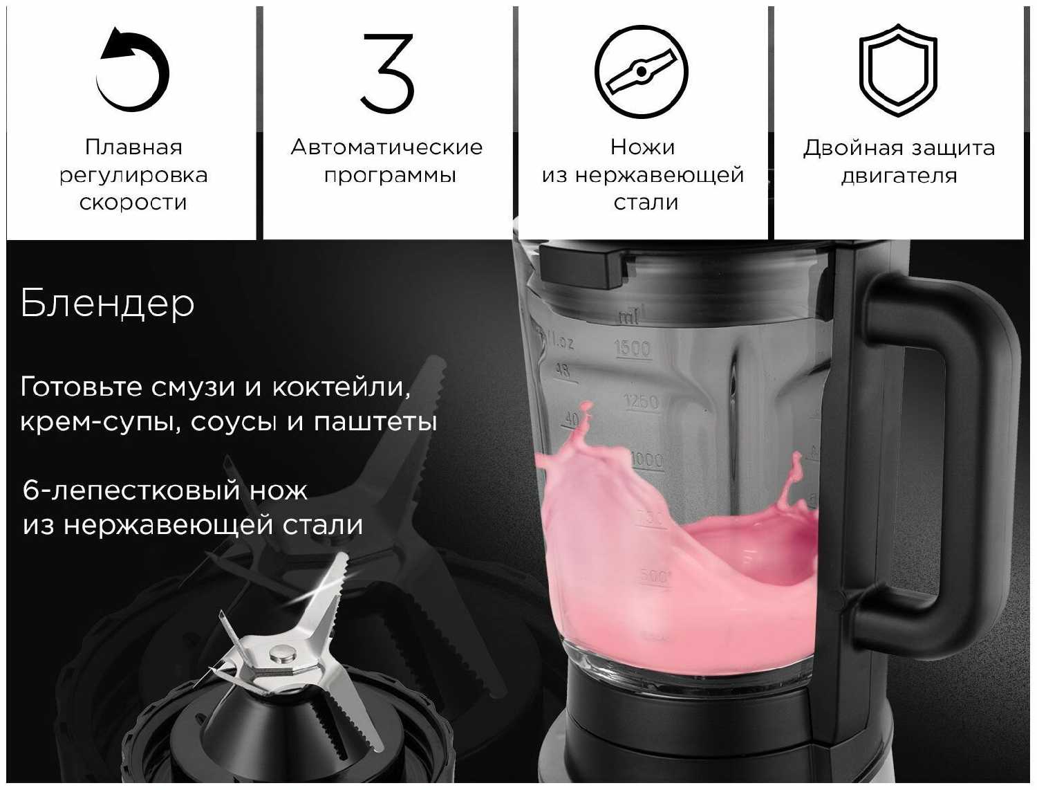 Дополнительные функции : | защита от перегрузки, колка льда, плавная регулировка скорости |