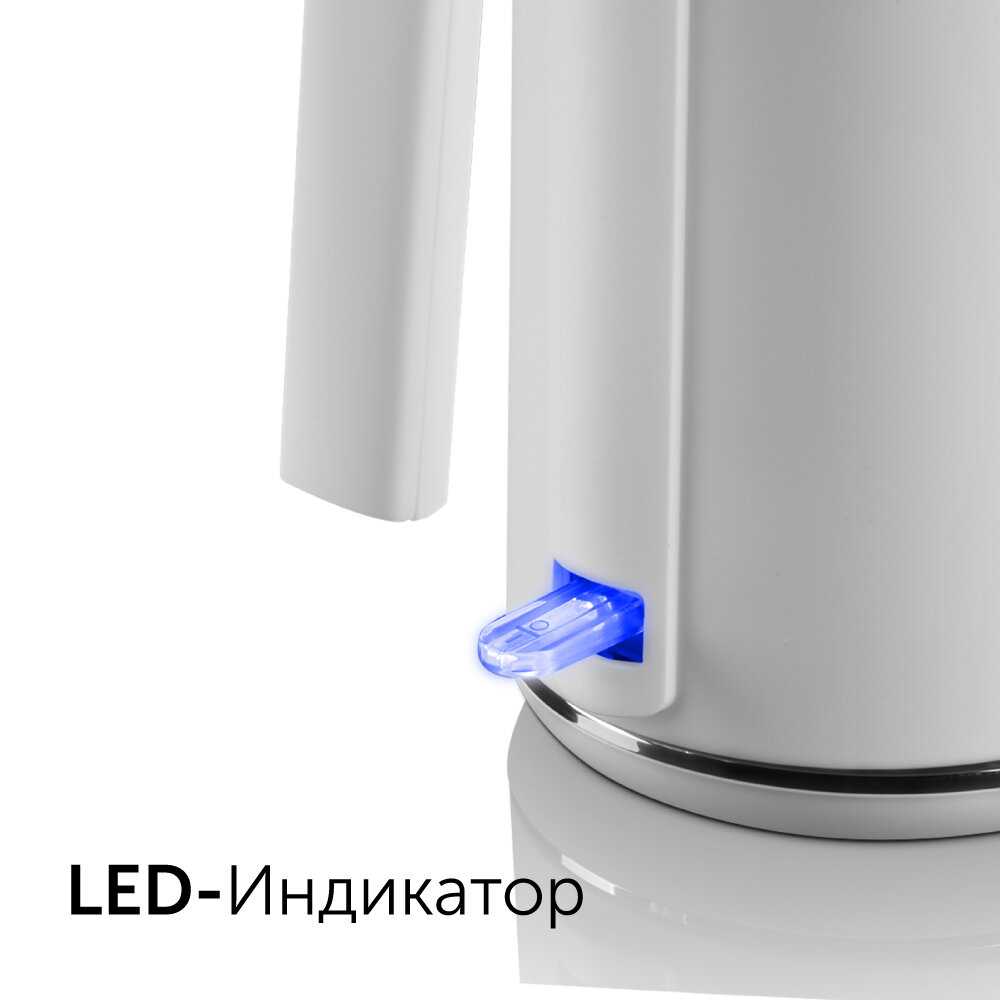 Π§Π°ΠΉΠ½ΠΈΠΊ Π²ΡΠ΄Π΅Π»ΡΠ΅ΡΡΡ ΡΠ΅Π»ΡΠ½ΠΎΠΌΠ΅ΡΠ°Π»Π»ΠΈΡΠ΅ΡΠΊΠΎΠΉ ΠΊΠΎΠ»Π±ΠΎΠΉ ΠΈΠ· Π½Π΅ΡΠΆΠ°Π²Π΅ΡΡΠ΅ΠΉ ΡΡΠ°Π»ΠΈ, ΡΡΠΎ ΠΏΠΎΠ»Π½ΠΎΡΡΡΡ ΠΈΡΠΊΠ»ΡΡΠ°Π΅Ρ ΠΊΠΎΠ½ΡΠ°ΠΊΡ Π²ΠΎΠ΄Ρ Ρ ΠΏΠ»Π°ΡΡΠΈΠΊΠΎΠΌ ΠΈΠ»ΠΈ ΡΠΈΠ»ΠΈΠΊΠΎΠ½ΠΎΠΌ, ΡΡΠΎ ΠΎΡΠΎΠ±Π΅Π½Π½ΠΎ ΡΠ΅Π½ΡΡ ΠΏΠΎΠ»ΡΠ·ΠΎΠ²Π°ΡΠ΅Π»ΠΈ, Π·Π°Π±ΠΎΡΡΡΠΈΠ΅ΡΡ ΠΎ ΡΠΈΡΡΠΎΡΠ΅ Π½Π°ΠΏΠΈΡΠΊΠΎΠ². ΠΠ²ΠΎΠΉΠ½ΡΠ΅ ΡΡΠ΅Π½ΠΊΠΈ ΠΊΠΎΡΠΏΡΡΠ° ΡΡΡΠ΅ΠΊΡΠΈΠ²Π½ΠΎ Π·Π°ΡΠΈΡΠ°ΡΡ ΠΎΡ ΠΎΠΆΠΎΠ³ΠΎΠ², ΡΠΎΡ ΡΠ°Π½ΡΡ Π²Π½Π΅ΡΠ½ΡΡ ΠΏΠΎΠ²Π΅ΡΡ Π½ΠΎΡΡΡ ΠΏΡΠΎΡ Π»Π°Π΄Π½ΠΎΠΉ Π΄Π°ΠΆΠ΅ ΠΏΡΠΈ ΠΊΠΈΠΏΡΡΠ΅Π½ΠΈΠΈ, Π° Π°Π²ΡΠΎΠΌΠ°ΡΠΈΡΠ΅ΡΠΊΠΎΠ΅ ΠΎΡΠΊΠ»ΡΡΠ΅Π½ΠΈΠ΅ ΠΈ Π·Π°ΡΠΈΡΠ° ΠΎΡ ΠΏΠ΅ΡΠ΅Π³ΡΠ΅Π²Π° Π³Π°ΡΠ°Π½ΡΠΈΡΡΡΡ ΠΏΠΎΠΆΠ°ΡΠΎΠ±Π΅Π·ΠΎΠΏΠ°ΡΠ½ΠΎΡΡΡ. Π£ΡΡΠΎΠΉΡΠΈΠ²Π°Ρ ΠΏΠΎΠ΄ΡΡΠ°Π²ΠΊΠ° Ρ ΡΡΡΠΊΠΎΠΉ ΡΠΈΠΊΡΠ°ΡΠΈΠ΅ΠΉ (Ρ ΠΎΡΡ Ρ ΠΎΡΠ΄Π΅Π»ΡΠ½ΡΡ ΡΠΊΠ·Π΅ΠΌΠΏΠ»ΡΡΠΎΠ² Π·Π°ΠΌΠ΅ΡΠ΅Π½Π° ΡΠ°ΡΠΊΠΎΡΡΡ) ΠΈ ΠΏΡΠΎΡΠ½ΡΠΉ ΠΊΠ°Π±Π΅Π»Ρ Π΄ΠΎΠΏΠΎΠ»Π½ΡΡΡ Π½Π°Π΄ΡΠΆΠ½ΠΎΡΡΡ. Π¦Π΅Π»ΡΠ½ΠΎΠ»ΠΈΡΠ°Ρ ΠΊΠΎΠ»Π±Π° ΠΏΡΠ΅Π΄ΠΎΡΠ²ΡΠ°ΡΠ°Π΅Ρ ΠΏΡΠΎΡΠ΅ΡΠΊΠΈ, ΡΡΠΎ ΠΏΠΎΠ΄ΡΠ²Π΅ΡΠΆΠ΄Π°Π΅ΡΡΡ Π΄Π»ΠΈΡΠ΅Π»ΡΠ½ΠΎΠΉ ΡΠΊΡΠΏΠ»ΡΠ°ΡΠ°ΡΠΈΠ΅ΠΉ Π±Π΅Π· Π½Π°ΡΠ΅ΠΊΠ°Π½ΠΈΠΉ.