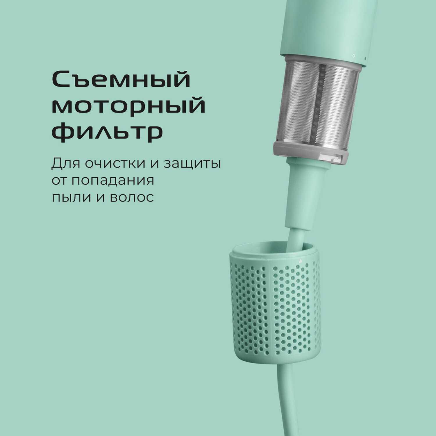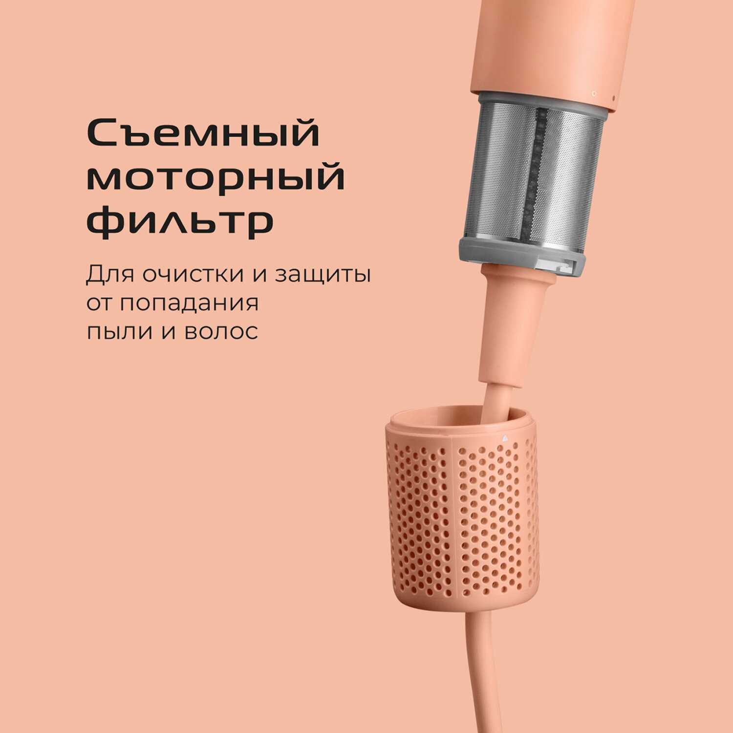 В нижней части рукоятки расположен съемный фильтр, который предотвращает попадание пыли и мелких частиц внутрь прибора и на волосы. Пользователи отмечают, что это продлевает срок службы фена. Фильтр имеет систему самоочистки, но при необходимости защитную крышку можно снять для самостоятельной прочистки. Это продуманное решение для поддержания производительности устройства. -