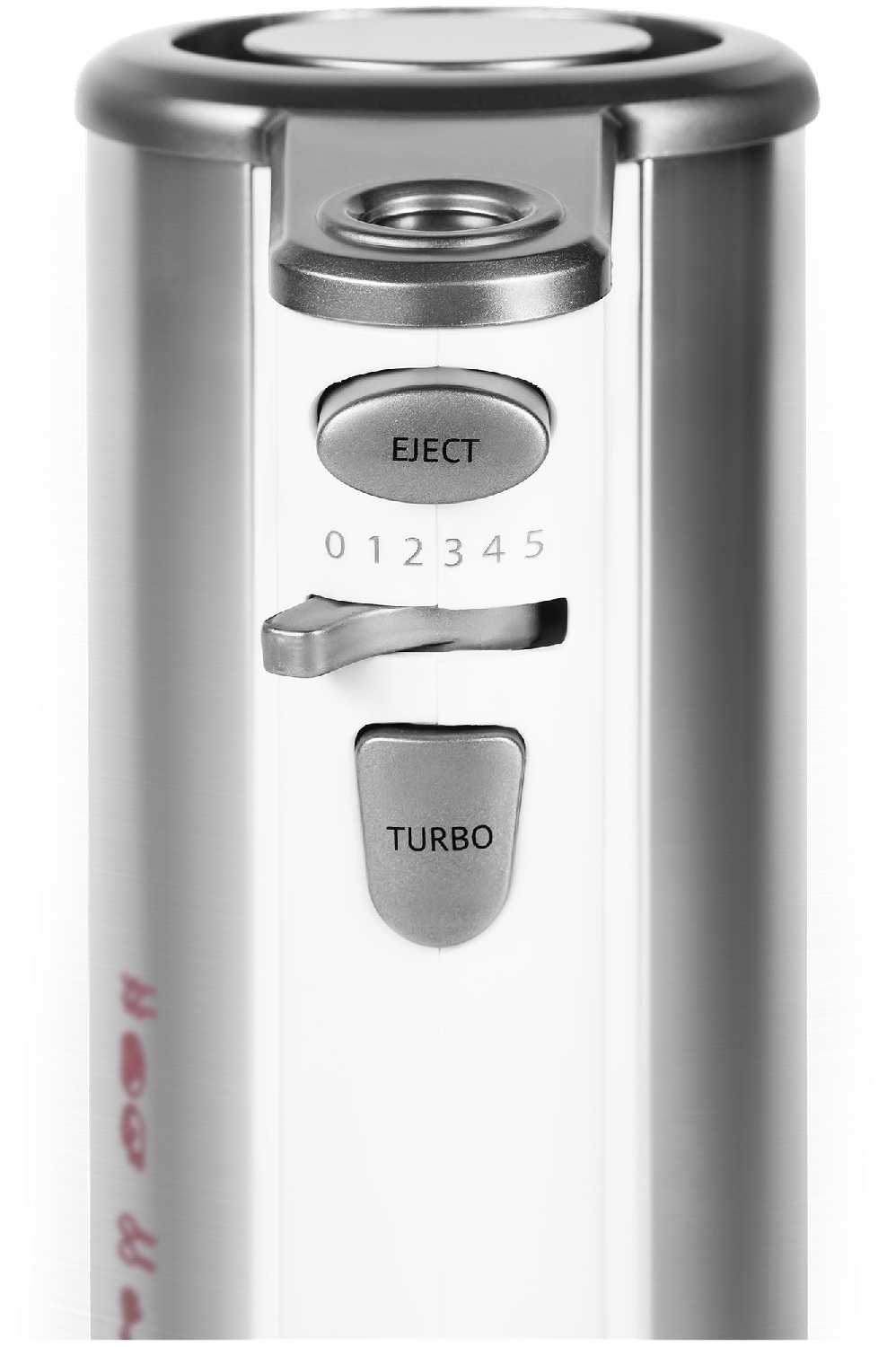 - + Любовь с первого взляда.Красивый внешний вид, металлический корпус, мощность 500 Вт., 5 скоростей, которые легко переключаются между собой.Присутствует турбо режим, что не мало важно, для взбивания белков .