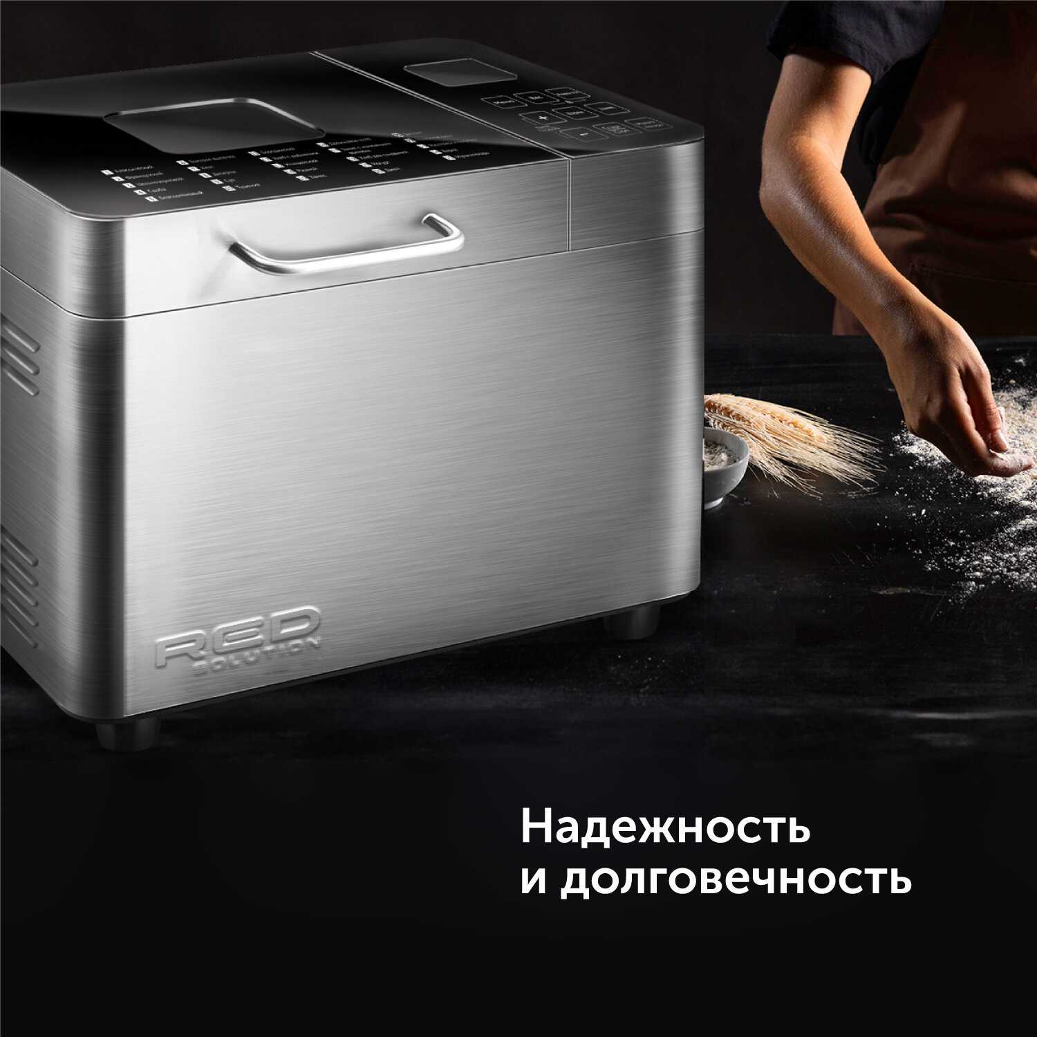 - + Компактная, много режимов выпечки, великолепный замес теста, чаша с керамическим покрытием, длинный шнур питания, громкий звук оповещения, есть замечательное приложение на плэй маркете "Готовим с RED"