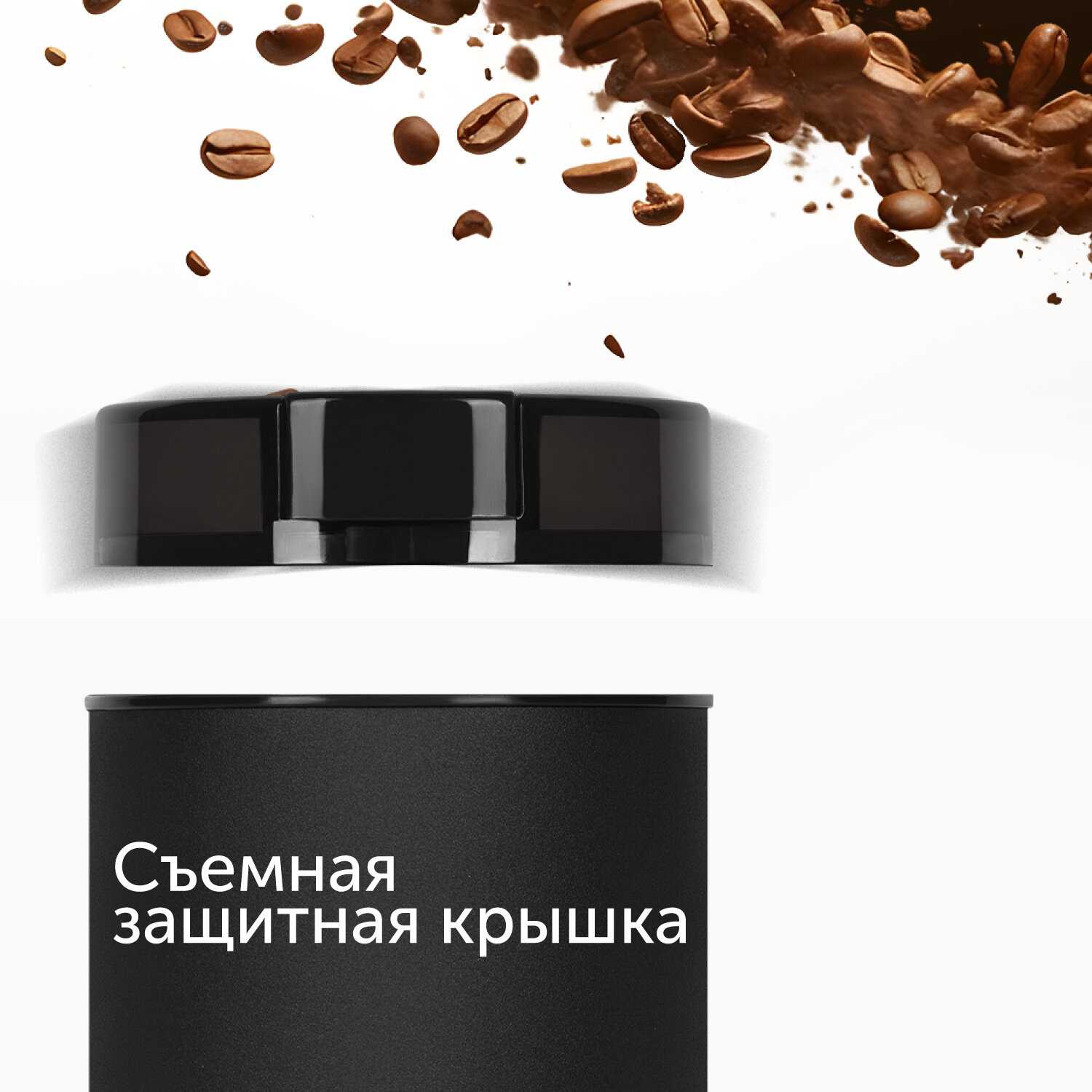 Кнопка запуска, расположенная на крышке, выделяется как одно из ключевых преимуществ. Она крупная, реагирует на нажатие всей подушечкой пальца, что исключает соскальзывание. Такая конструкция особенно оценена теми, кто часто использует кофемолку с влажными руками. -