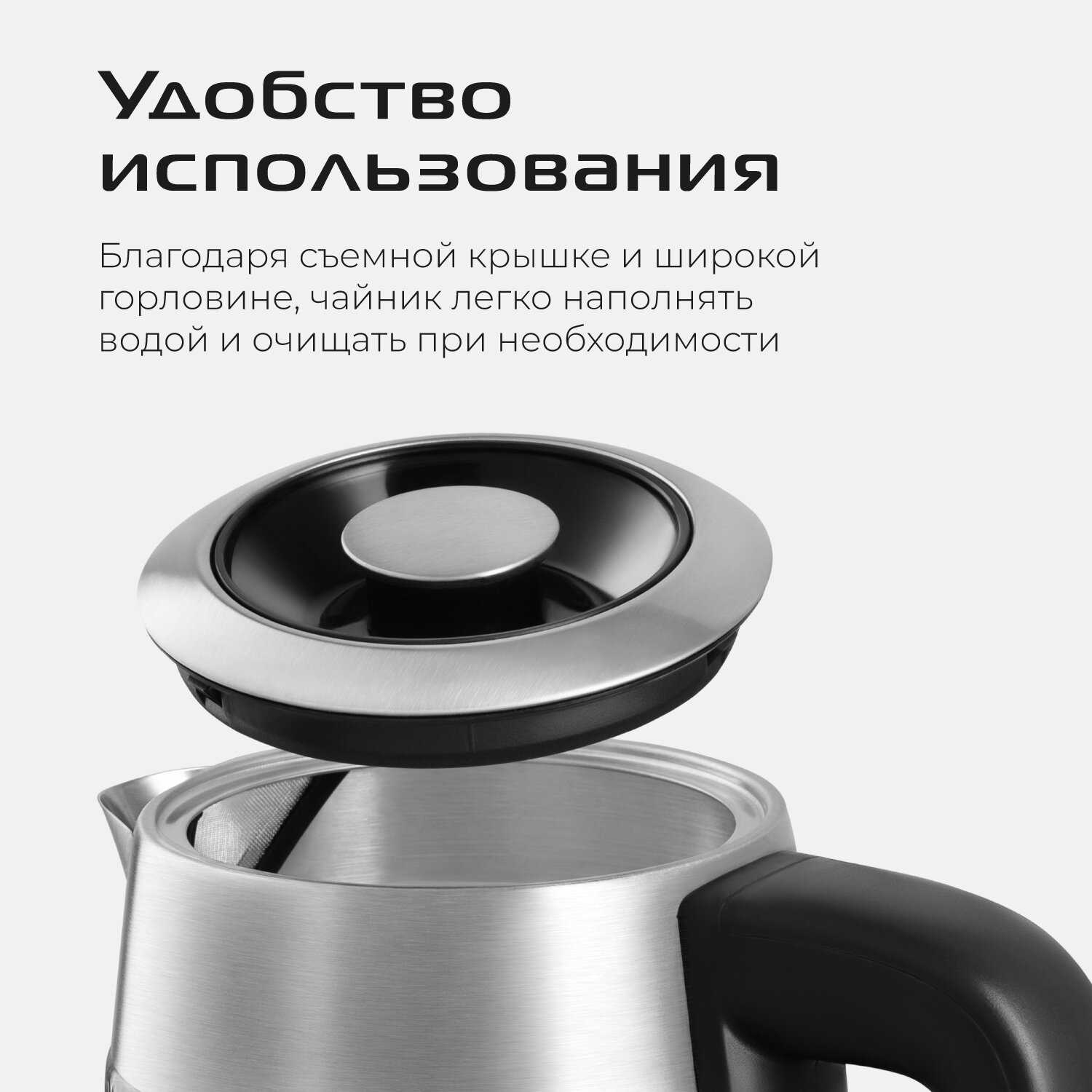 У чайника удобная съемная крышка, что облегчает процесс наливания воды и чистки устройства.