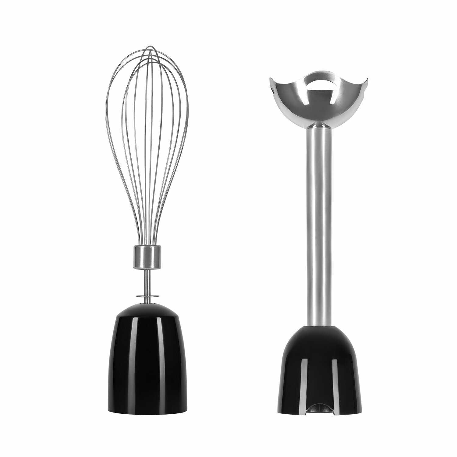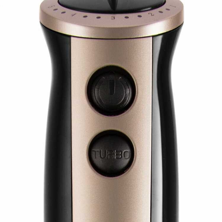 - + Металлический наконечник позволяет готовить горячие продукты, он легко отсоединяется с помощью двух кнопок сбоку. Удобный переключатель скоростей, их вполне хватает. Есть насадка под приготовление продуктов в чаше, есть мерный кувшин, который также подойдёт для приготовления. Ножи вполне качественно измельчают продукты, достаточно крепкие. Венчик правда немного слабоват и не подойдёт для перемешивания густых продуктов.