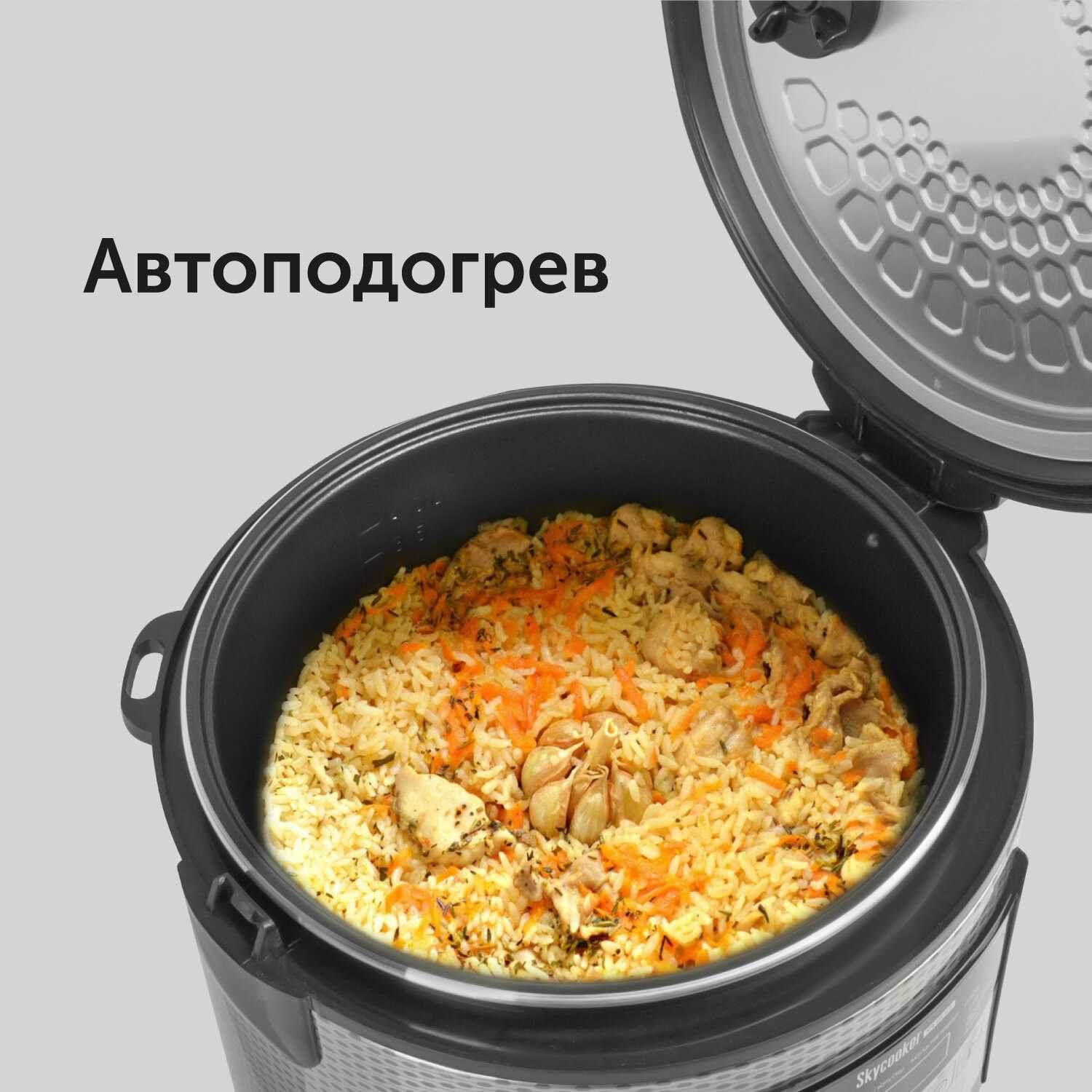 Корпус не перегревается, а автоподогрев (до 12 часов) сохраняет блюдо теплым без пересыхания. Однако при готовке жирных блюд, например рульки, рекомендуется протирать ТЭН от брызг. -