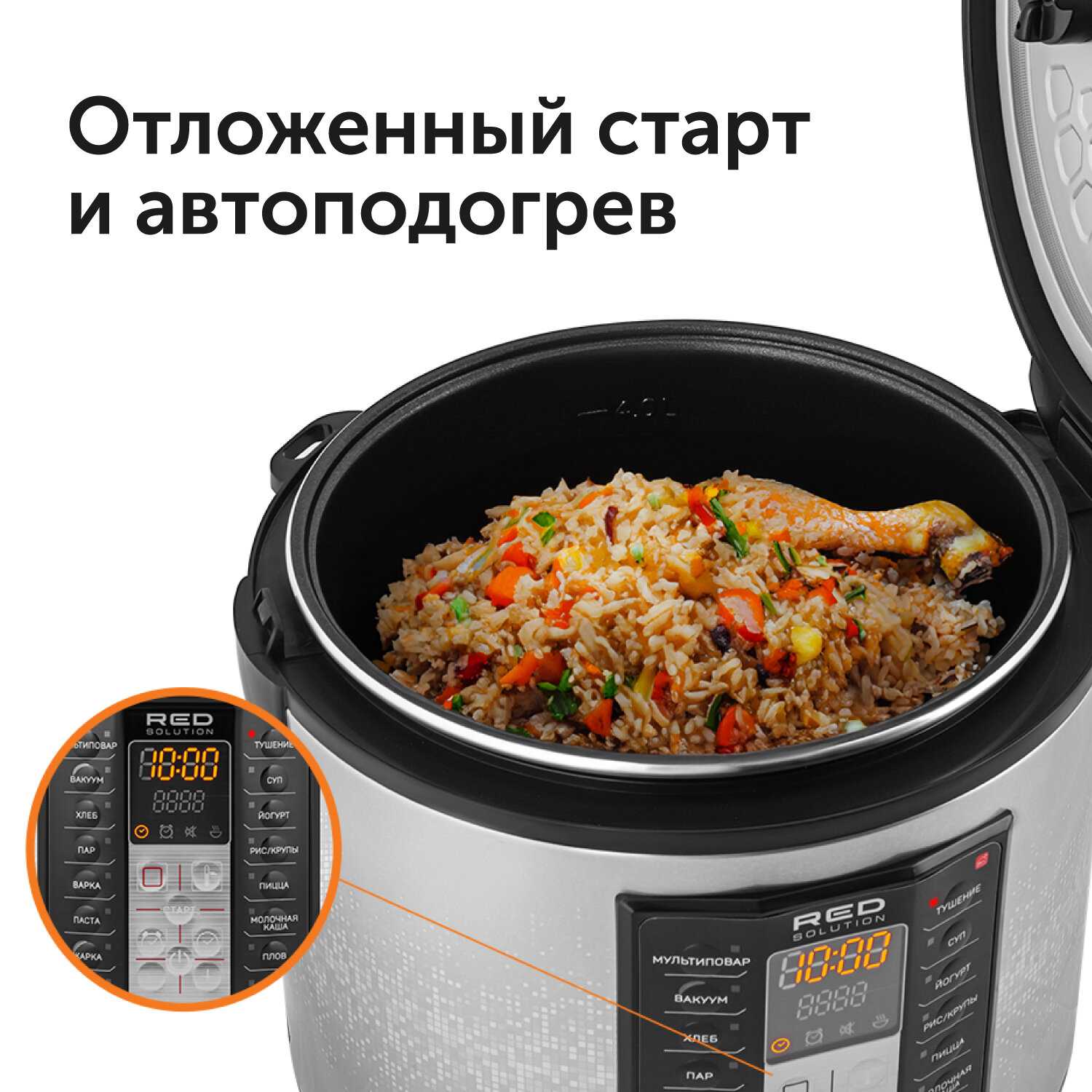 - Позволяет загружать ингредиенты с вечера и устанавливать таймер для автоматического начала готовки к утру (например, для свежей каши к завтраку).