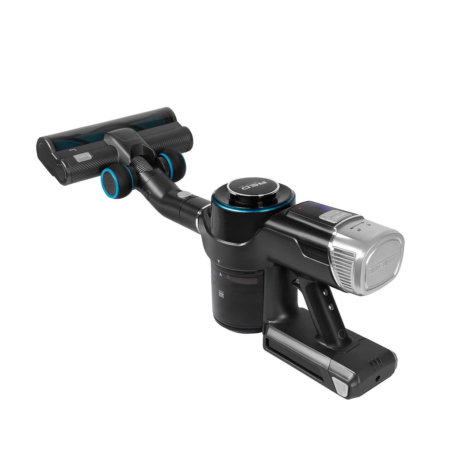 Благодаря узкой щелевой насадке и вращающейся турбощетке прибор очищает пространство под шкафами, плинтусы и углы. Подсветка на основной щетке помогает видеть скопления пыли в затемненных зонах. Владельцы успешно используют его для чистки салонов авто, матрасов и ящиков комодов. -