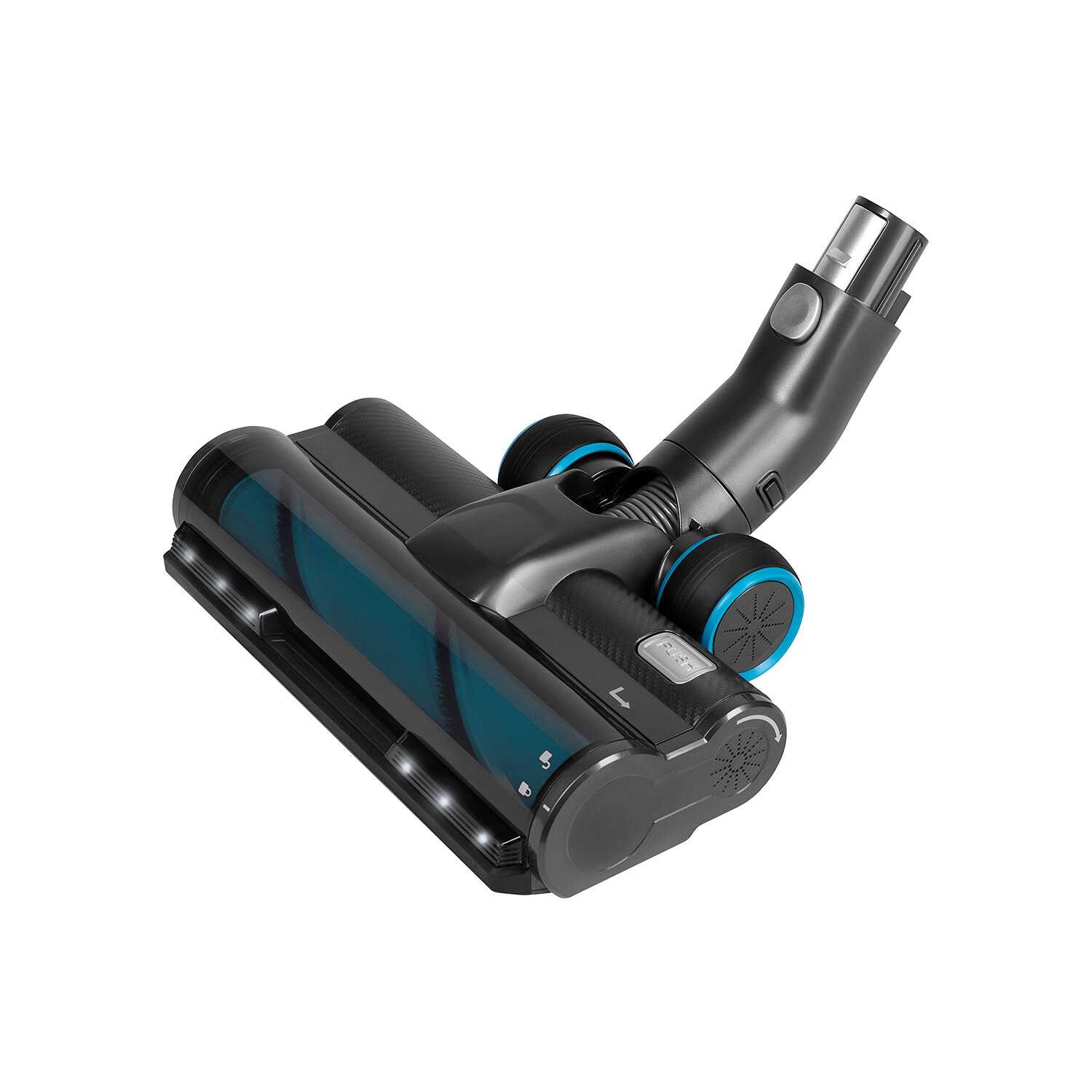 - Светодиодная подсветка на турбощётке позволяет визуально контролировать качество уборки в затемнённых зонах (под мебелью, в углах).