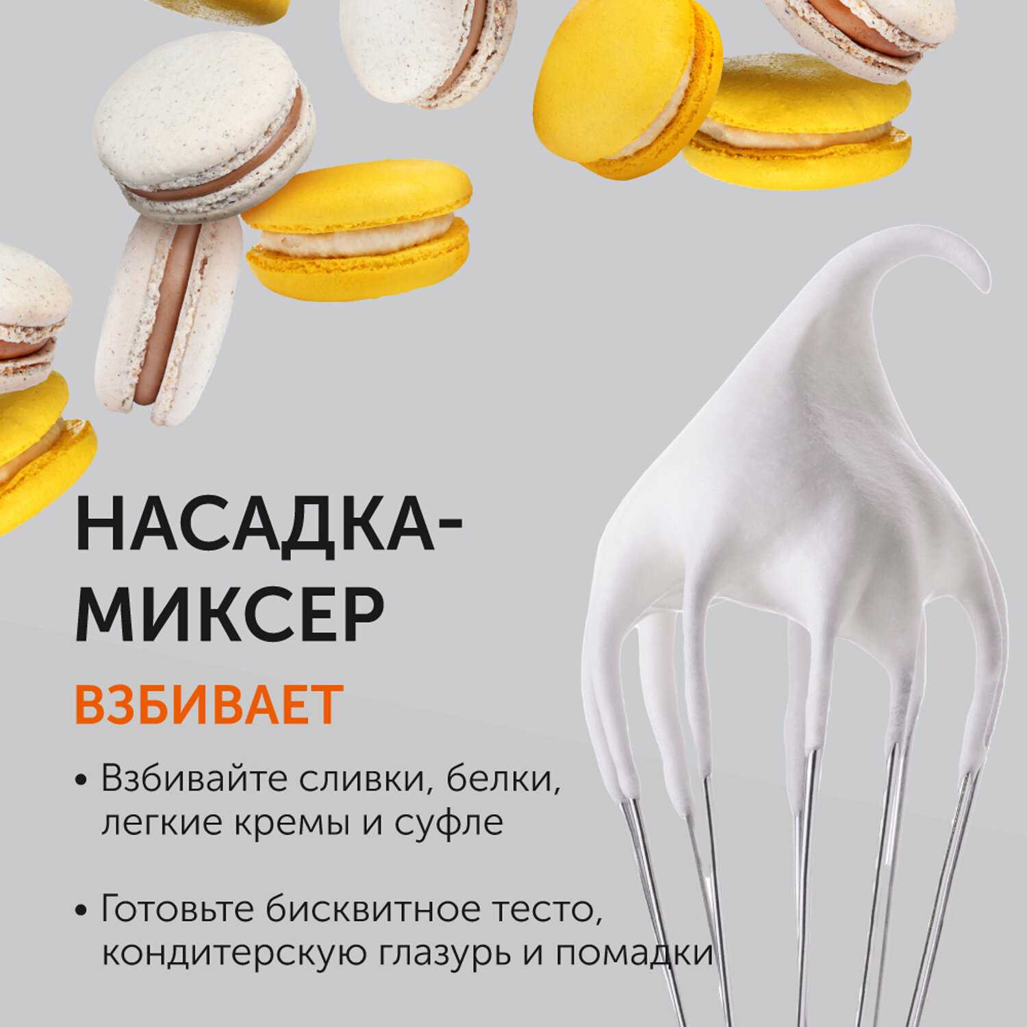 Думаю отлично подойдет для бизе и кремов. Измельчитель отличный. Не вязнет. 4 гранное крепление. Внешне достойный пластик, удобен в руке. Кнопка мягкая, с длинными ногтями не комфортно может быть. За качество сняла звезду, тк пришлось мыть кухню. Стакан очень маленький. Использую как мерный. Отличная вещь, но надо додумать и слабых оборотов нет просто нет